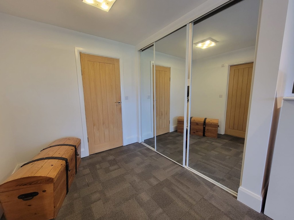 DRESSING AREA: 7' 5 " x 6' 9" (2.26m x 2.06m) Incorporating full height fitted wardrobes with three large sliding mirrored doors, inset with fitted shelves and hanging rails.