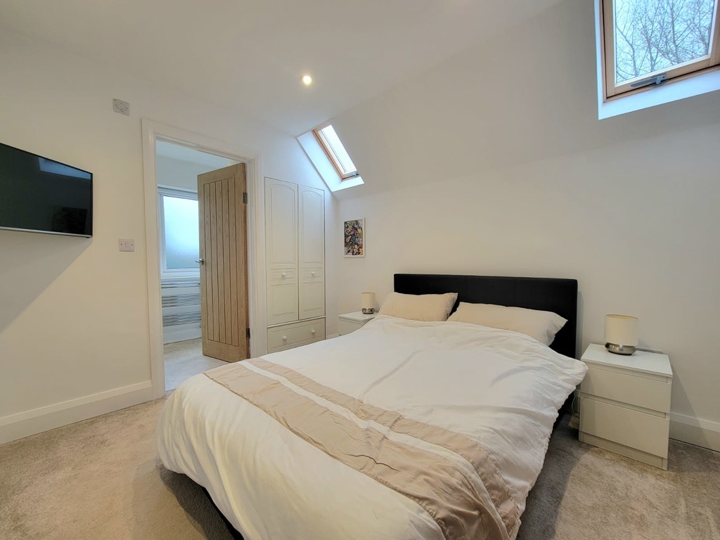 BEDROOM 3: 10' 2" x 9' 3 " (3.1m x 2.82m) Radiator, inset spotlights, tv point, built-in wardrobe with inset fitted shelves and hanging rail, drawer unit, two Velux roof windows.