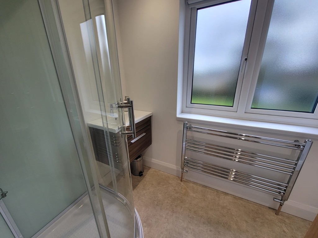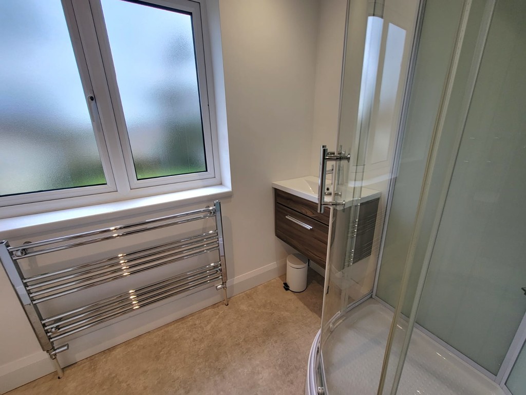 EN-SUITE: 9' 2" x 5 ' 2" (2.79m x 1.57m) Suite comprises low level wc, independent shower enclosure with curved glazed screen and vanity unit with inset wide wash hand basin with mono mixer tap, wood effect finish with storage drawer, chrome towel radiator, window to the front aspect.
