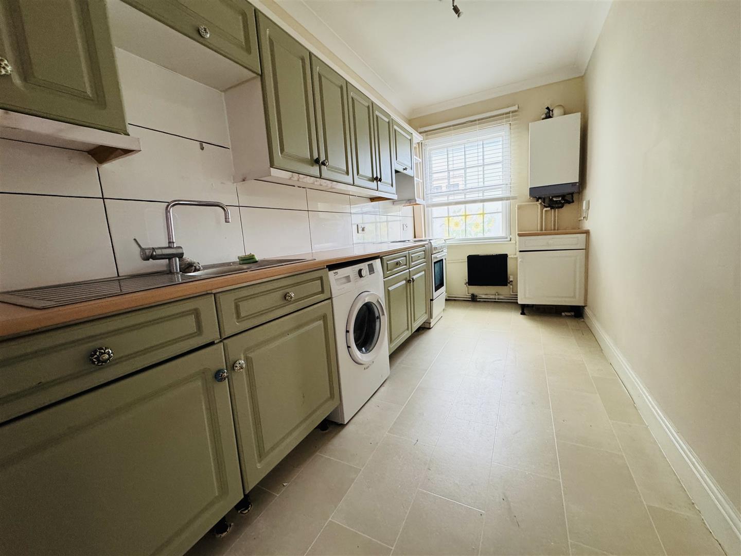 Kitchen: 15'8 x 6'4 (4.78m x 1.93m) Secondary glazed sash window. Sink and drainer, work tops, wall and base units, space for appliances and wall
