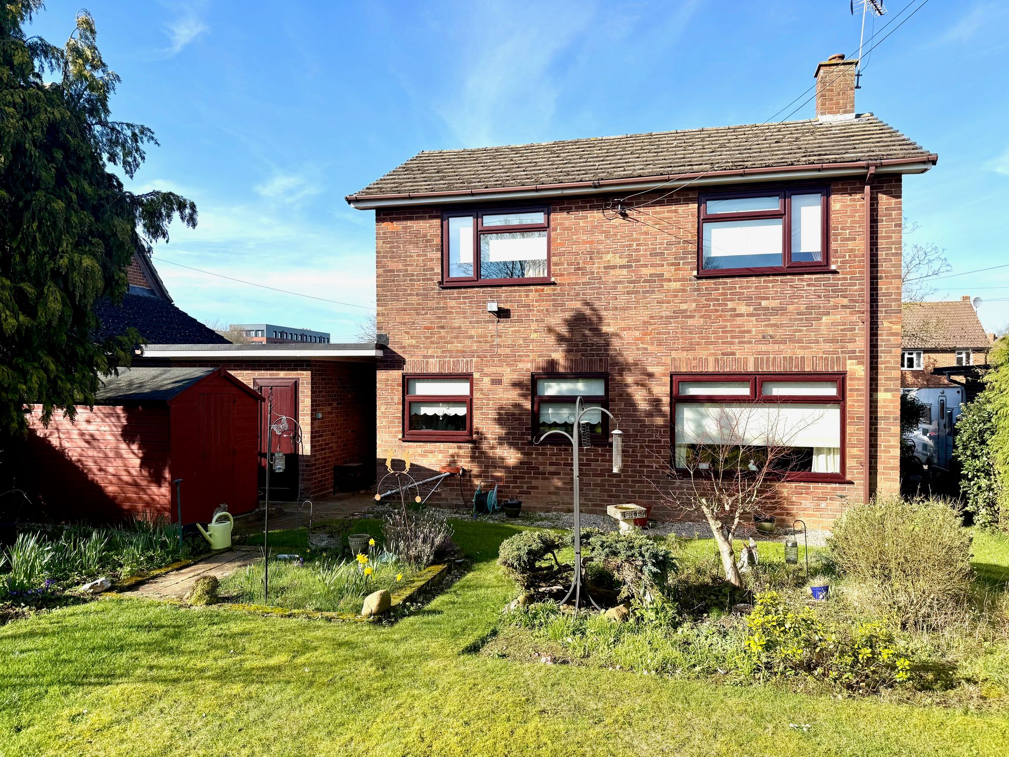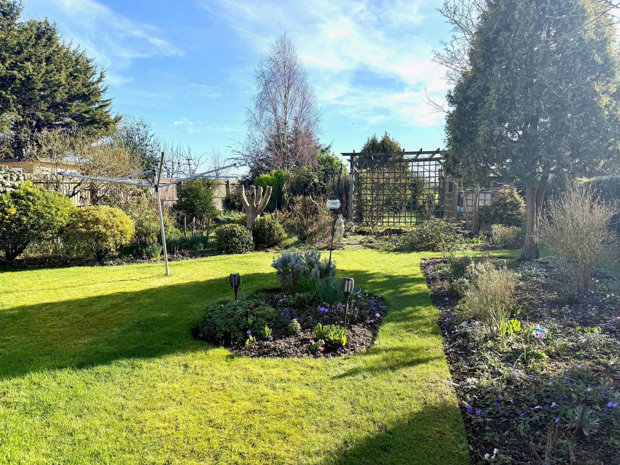 outside to the front is mainly laid to lawn, driveway and garage, gate leading to the rear garden. To the rear is a large garden. Mature garden with a variety of lawn and slower beds, patio and shed.