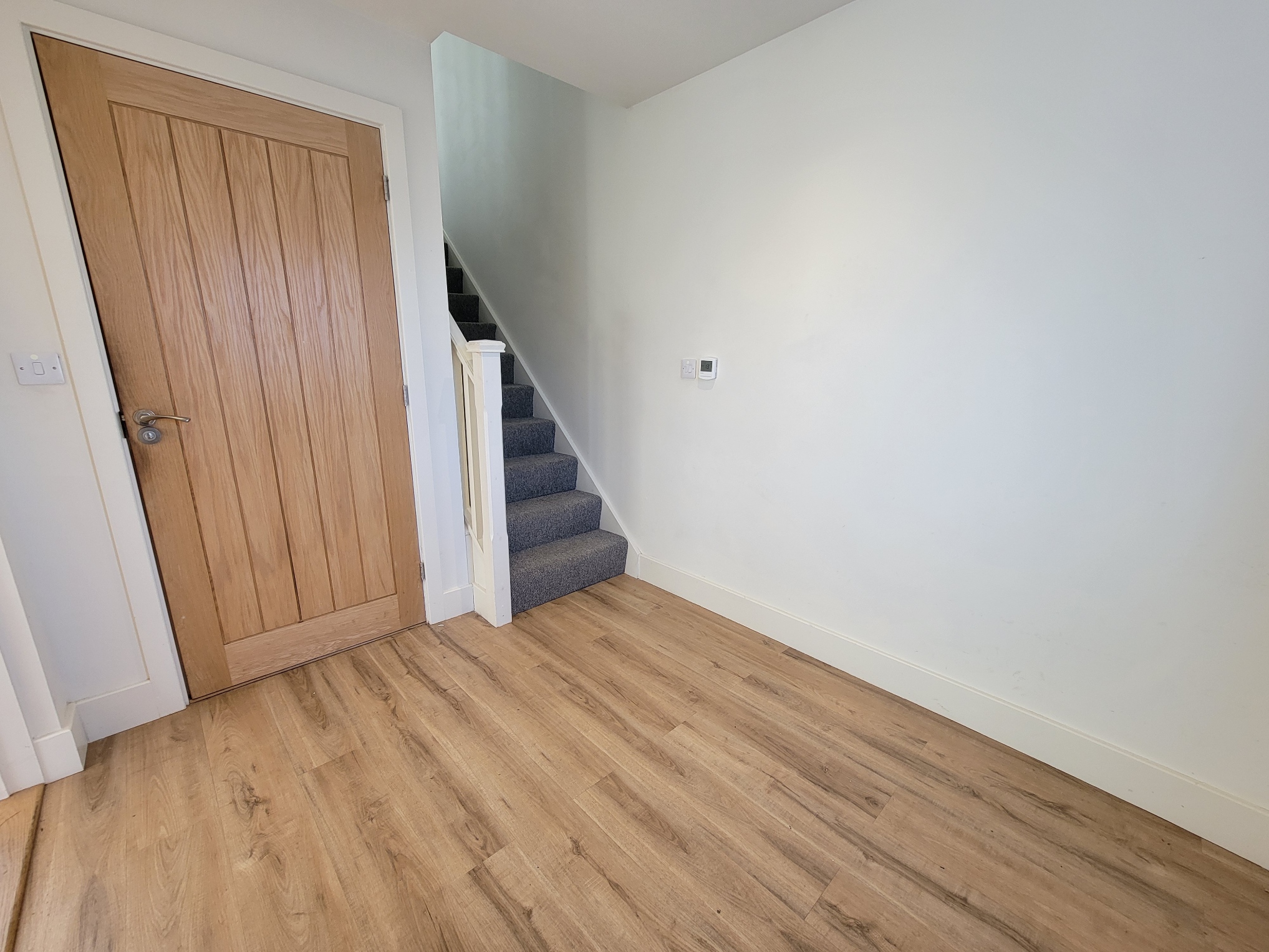 8' 4" x 7' 2" (2.54m x 2.18m) Part glazed entrance door, Karndean style wood effect flooring, staircase to the first floor, inset spotlights smoke alarm, solid oak panelled doors.