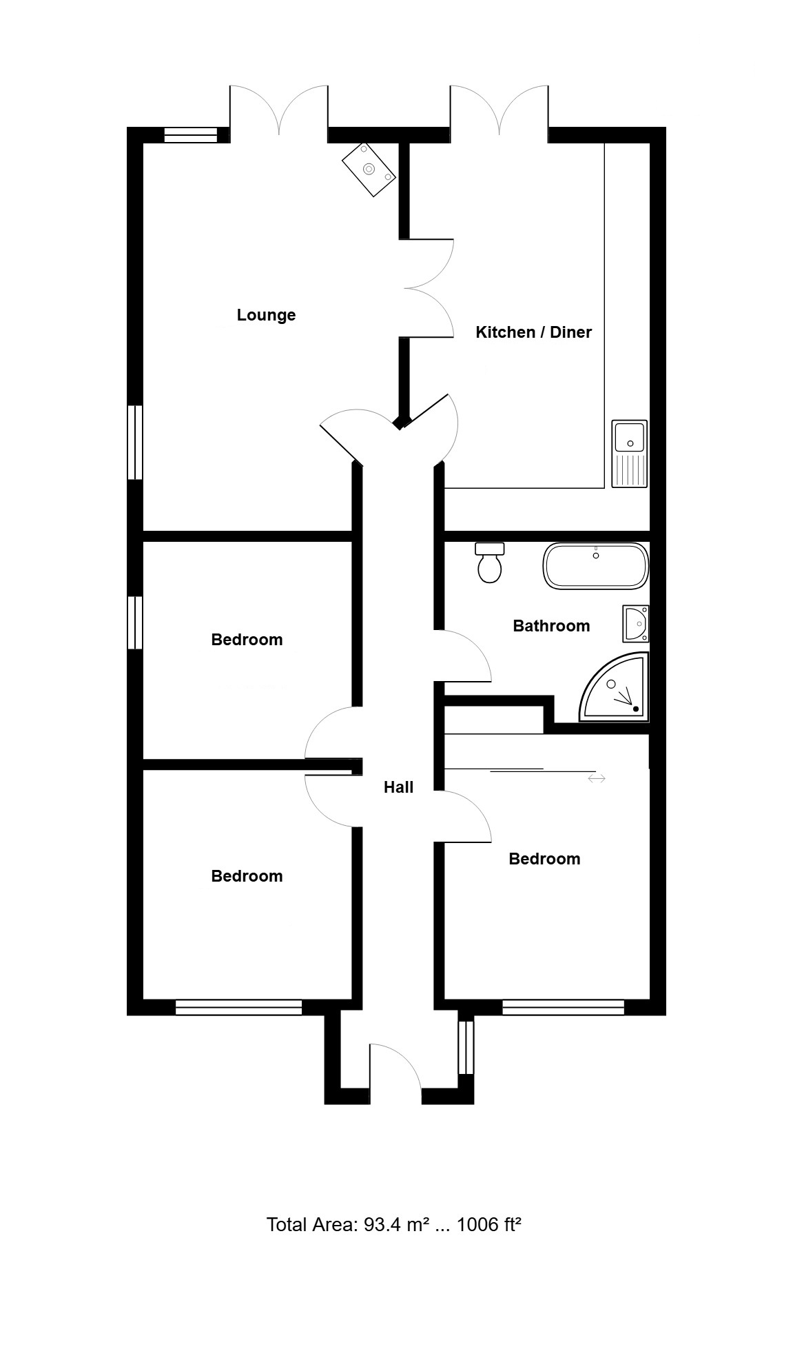 This most deceptive bungalow has been the subject of an extensive extension and has been refurbished and upgraded in previous years with modern contemporary interior, beautifully presented with spacious room sizes throughout. Features include a 32' long entrance hall, three double bedrooms, stylish contemporary bathroom with separate shower. The impressive kitchen/dining room is located to the rear with French doors opening to the garden and fitted with a good range of stylish, high quality units, the sitting room is also located to the rear with feature wooden flooring and wood burning stove. To the front there are good amounts of off road parking and the rear garden offers a good degree of seclusion having been designed with low maintenance in mind with useful detached timber outbuilding, suitable for various uses. Internal viewing is essential to appreciate to the size and quality of the accommodation on offer.