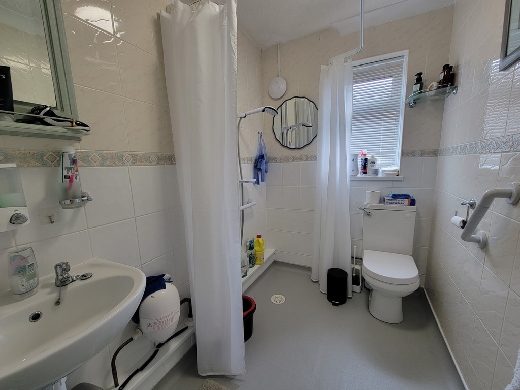 WETROOM: Recently re-fitted with high quality fittings comprising low level wc, walk-in shower area and wall mounted wash hand basin, fully tiled walls with decorative border, non-slip wetroom flooring, triple glazed window to the side aspect.