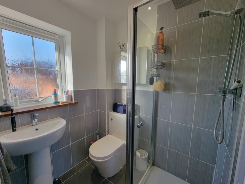 EN-SUITE: 5 ' 9" x 5 ' 5 " (1.75m x 1.65m) Suite comprises low level wc, pedestal wash hand basin and good size shower enclosure with glazed screen, heated towel rail, PVC double glazed window to the rear aspect.