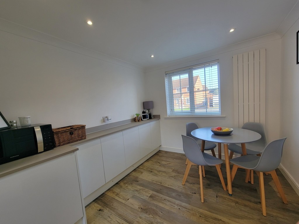 KITCHEN/DINING ROOM: 17' 9" x 8' 8" (5.41m x 2.64m) Fitted with a good range of base and wall mounted units having matching high gloss doors and drawer fronts, fitted worktops inset with stainless steel sink unit with mixer tap, four ring electric hob, extractor connected over, built-in dishwasher, fridge/freezer, eye level oven and coffee machine, space for washing machine, wood effect flooring, PVC double glazed windows to the front and rear aspects.