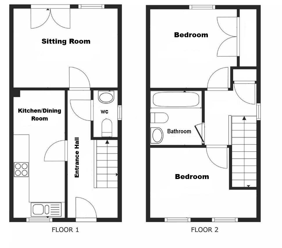 This recently built modern village house offers deceptively spacious, well presented accommodation throughout. Features include a spacious reception hall with ground floor cloakroom, the well fitted kitchen/dining room is located to the front with the sitting room with French doors opening to the rear garden. On the first floor a spacious landing gives access to two double bedrooms, one with built-in double wardrobe, there is also a family sized bathroom. Particular features of the house are the two side by side parking spaces located to the front and the landscaped, well stocked garden to the rear offering a good degree of privacy. Internal viewing is essential.