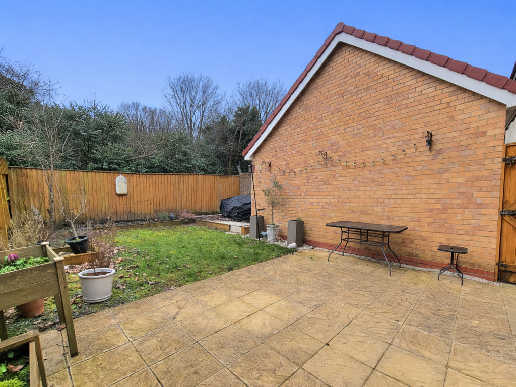 OUTSIDE: The property is located within a peaceful position, the front garden has been landscaped with low maintenance slate chippings. Extensive block paved drive tot he side provides parking for at least two cars and gives direct access to the brick built garage with pitched roof, up and over door. Secure gated access leads to the rear a garden, with extended paved terrace leading to a generous lawn, situated behind the garage there is a further paved terrace or hot tub area, the garden is fenced and faces due south, backing onto woodland providing a good degree of seclusion.