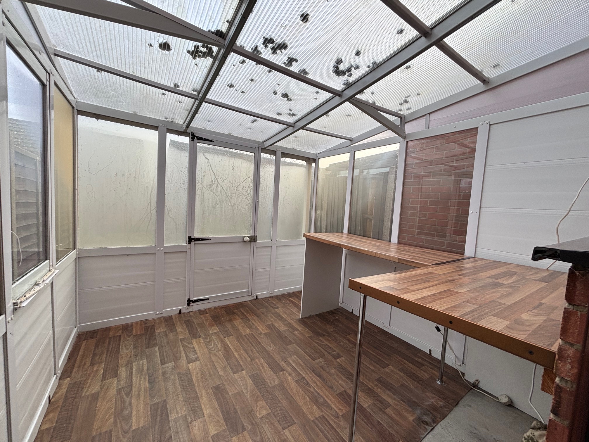 Fitted with a range of wall and base units with work surfaces and tiled splashbacks. Space for appliances, double glazed window to the rear and door leading to the lean-to.