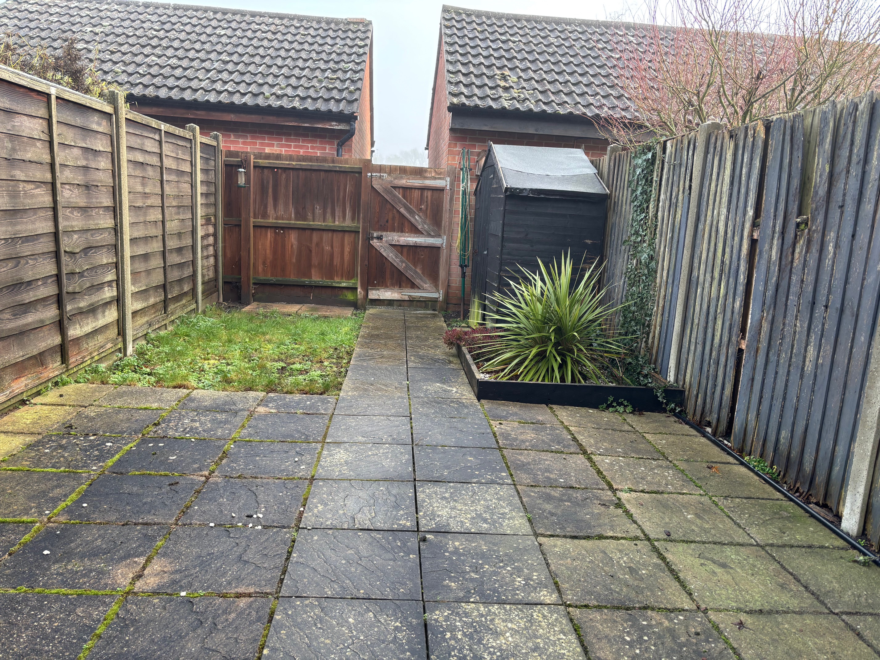 To the rear is an enclosed garden mainly laid to patio with a lawn area, enclosed by fencing and a rear gate.