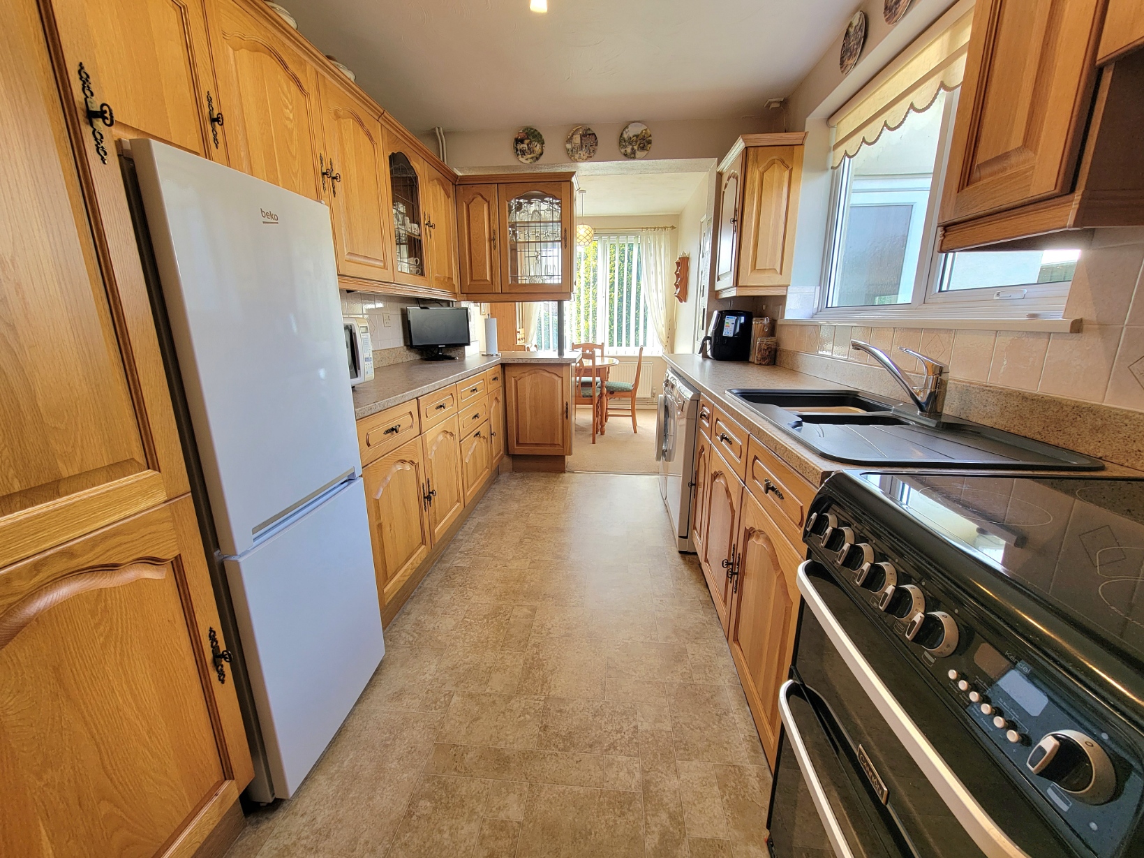 Kitchen: 13' 2" x 7' 11" (4.01m x 2.41m) Fitted with an extensive range of base and wall mounted units having solid wood panelled doors and drawer fronts, fitted worktops inset with one and a half bowl sink unit with mono mixer tap, plumbing for washing machine space for dishwasher, and fridge/freezer, electric cooker point, glazed display cupboards, two separate built-in larder cupboards, one housing the wall mounted Baxi gas fired boiler, generous PVC double glazed window to the side aspect.