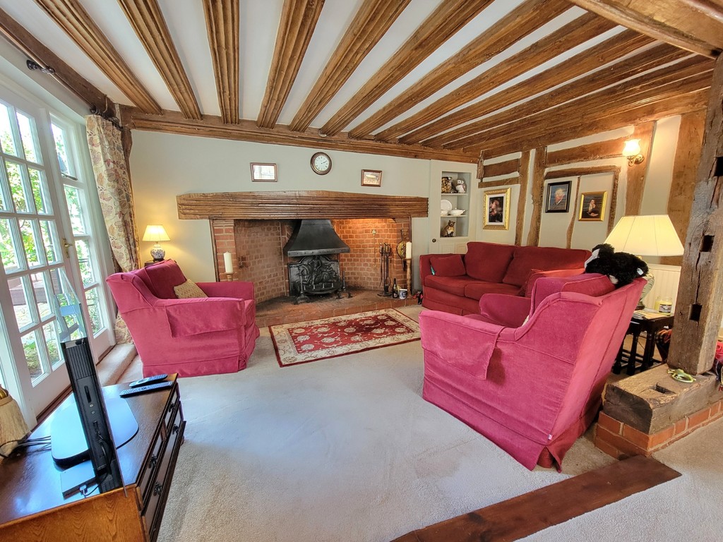 Kings Cottage offers well planned, upgraded and refurbished living spaces with an array of period features including oak timber frame with unusual fluted ceiling beams and bressummer, ledge and brace doors and inglenook fireplace, complimented by modern conveniences such as good quality shaker style kitchen and sitting room, shower room and en-suite bathroom. We believe the property was built circa late mid 16th century, of heavy timber framed construction displaying amazing and rare fluted ceiling beams and bressummer beam and pargeting to the ceiling. The property was substantially extended in 2010, now providing well planned, upgraded accommodation with delightful well stocked cottage style garden with various seating areas, double gates opening to a parking area. Internal viewing is essential to appreciate the charm and quality of the building throughout.