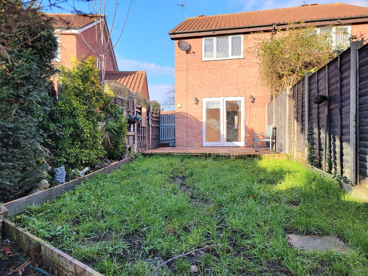 This surprisingly spacious two bedroom house is offered with the benefit of no onward chain, presented in good condition ready for immediate occupation. Features include covered entrance with built-in store leading to the good size reception hall, the kitchen is located to the front with modern units and built-in appliances, the sitting and dining room overlooks the generous rear garden with PVC French doors opening to a large sandstone terrace. On the first floor a galleried landing gives access to two bedrooms, both large enough to accommodate a double bed and both with double wardrobes, there is also a modern white bathroom suite. Internal viewing is essential.