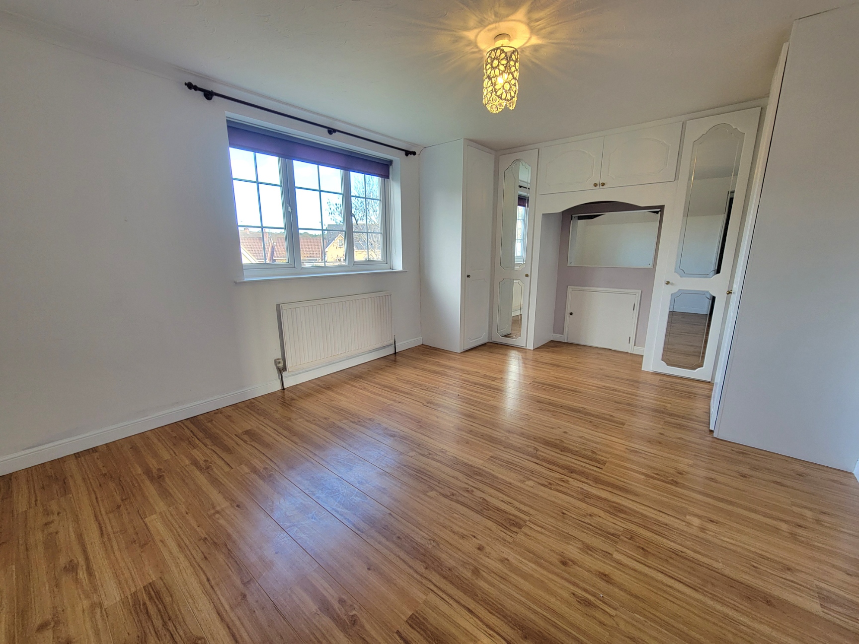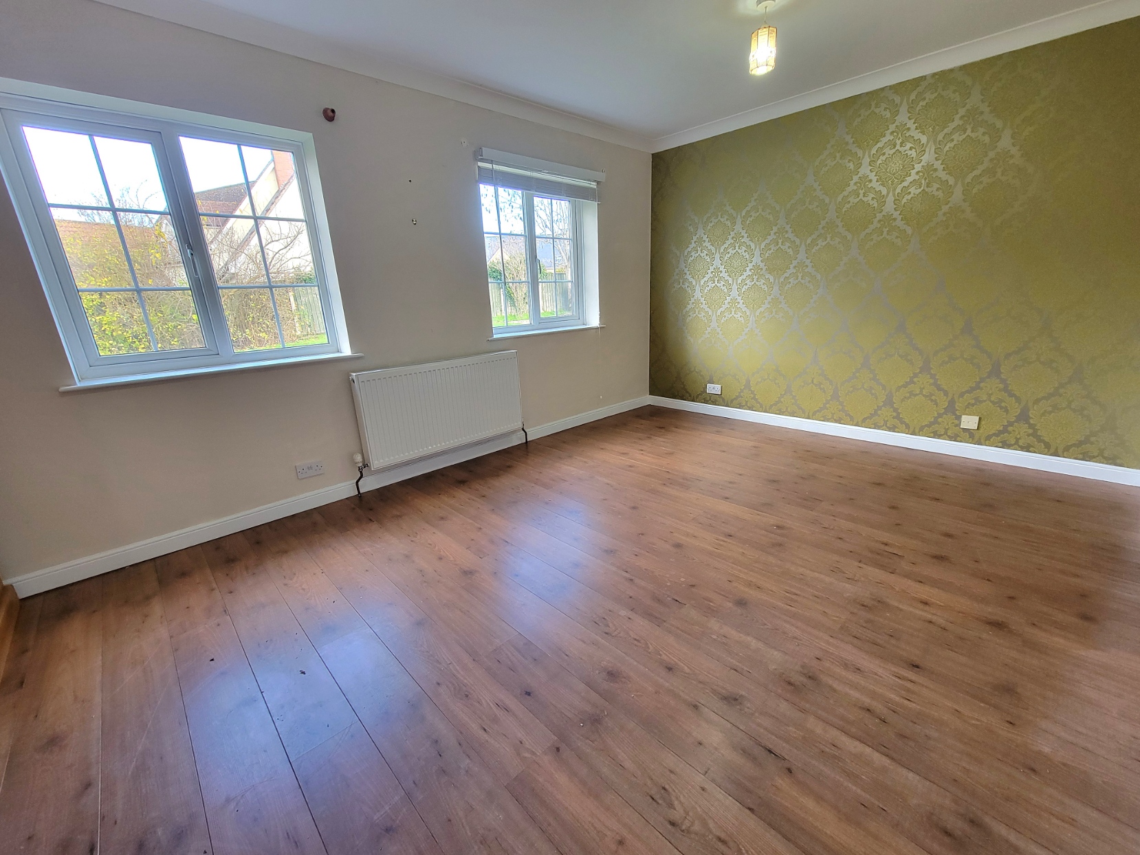 Bedroom 3: 13' 6" x 15' 10" (4.11m x 4.83m) Radiator, wood effect flooring, PVC double glazed window to the front aspect.