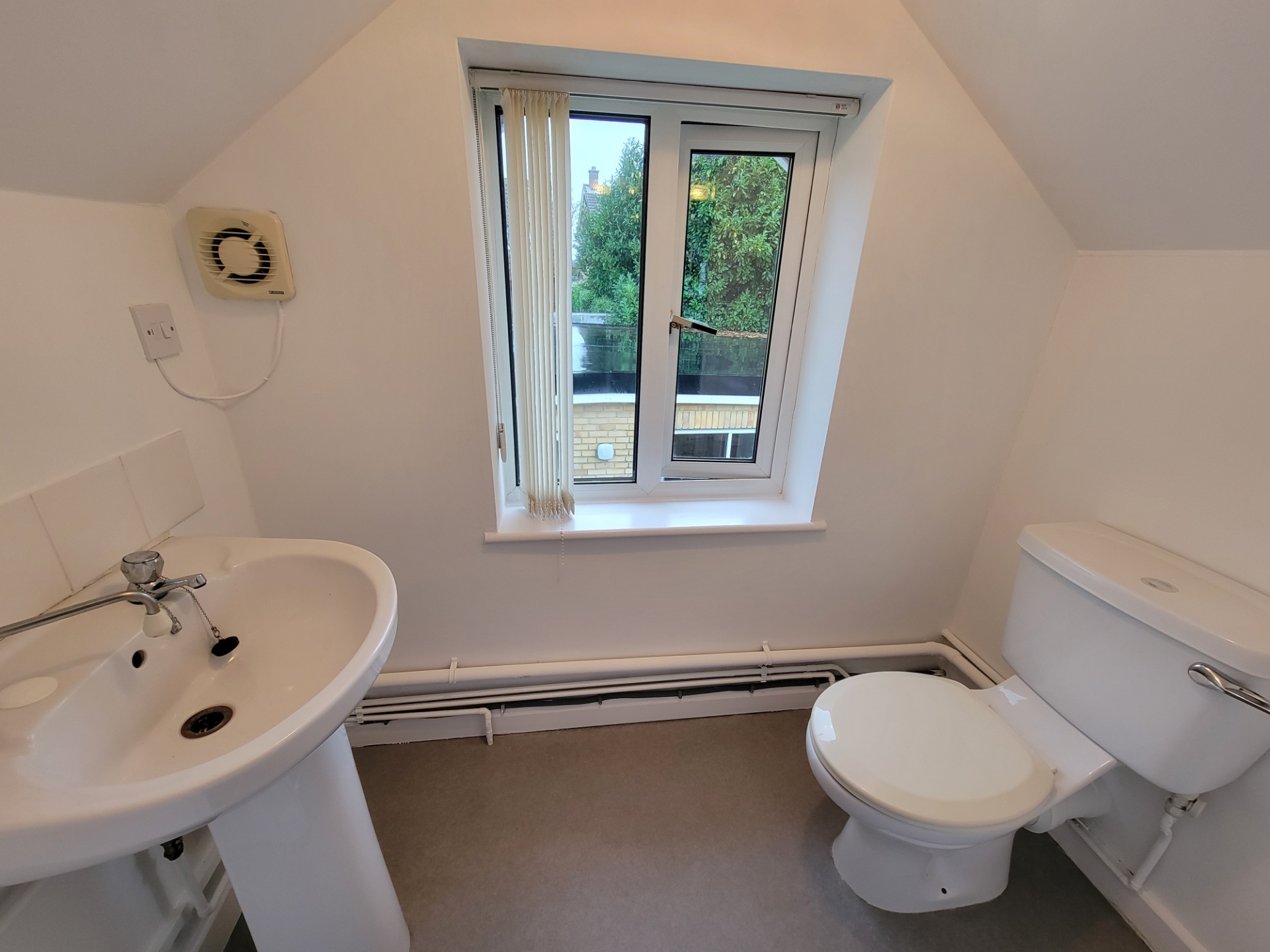 En-suite cloakroom: Low level wc and pedestal wash basin, PVC double glazed window to the rear aspect.