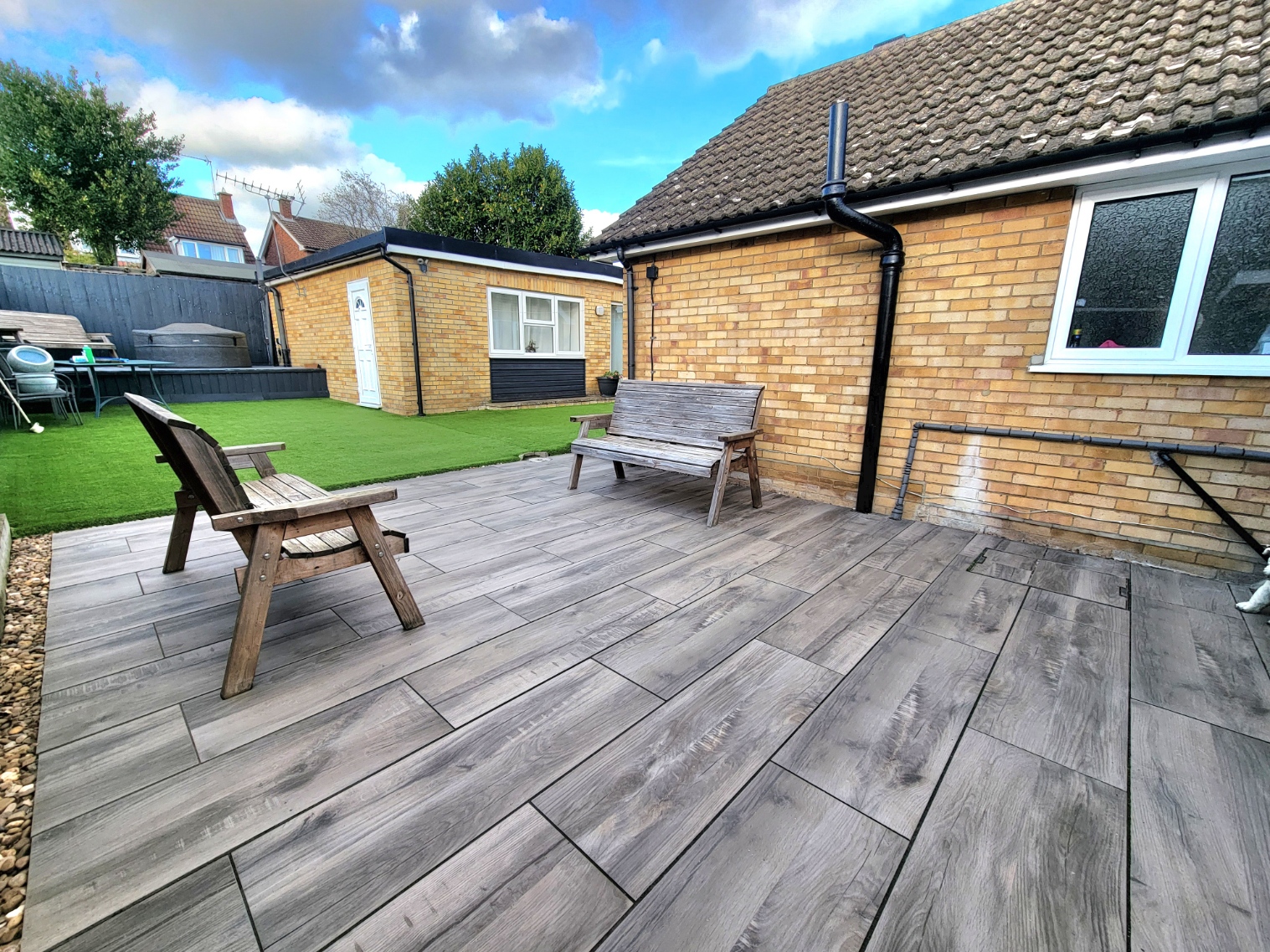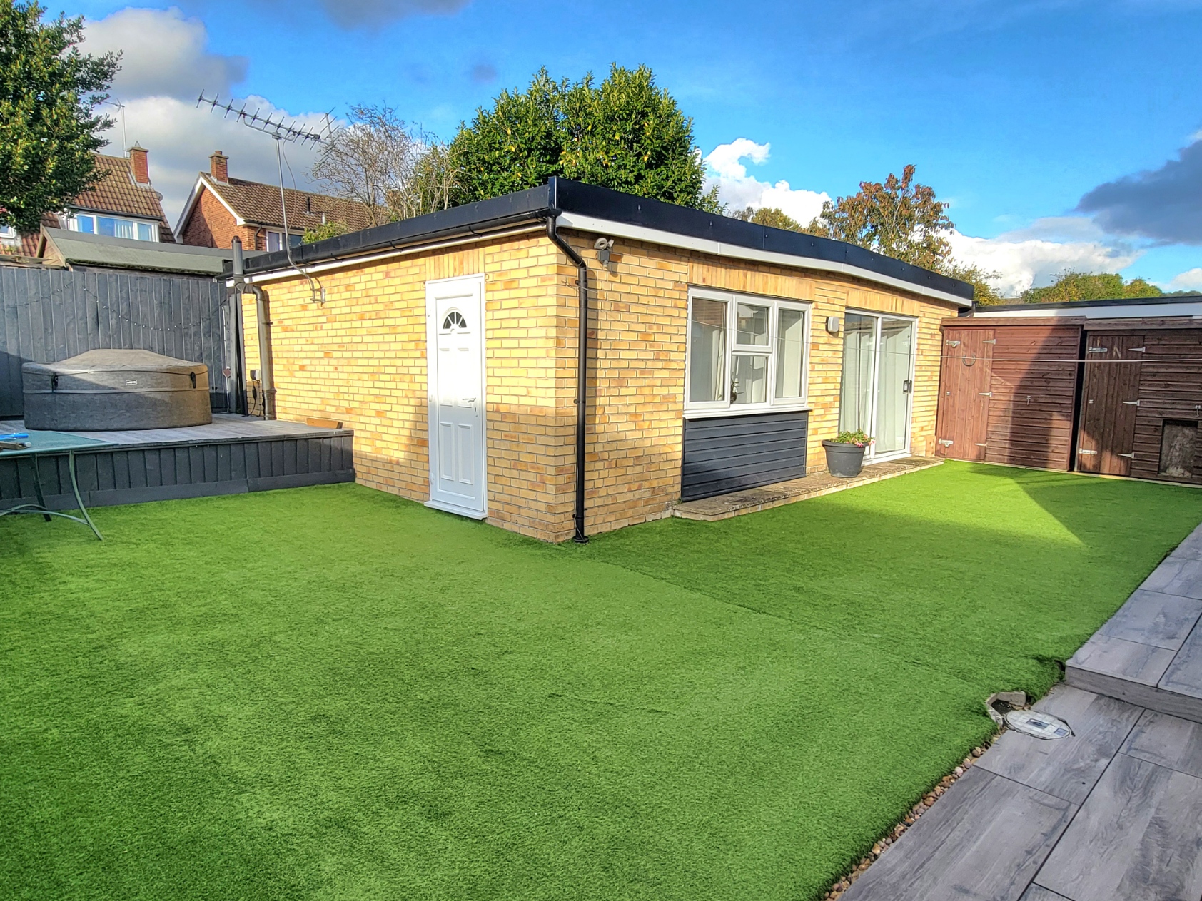 Outside: Generous paved drive provides off road parking and turning space giving direct access to the garage 17' x 8'8", roller door to the front, personal door leading directly into the bungalow. To the further side of the bungalow there is a wide gated access, suitable disabled access. The rear garden has been landscaped with low maintenance in mind with attractive timber effect porcelain terrace tiles leading to a generous artificial lawn, raised decking, fenced boundaries. Access leads to the annex building.