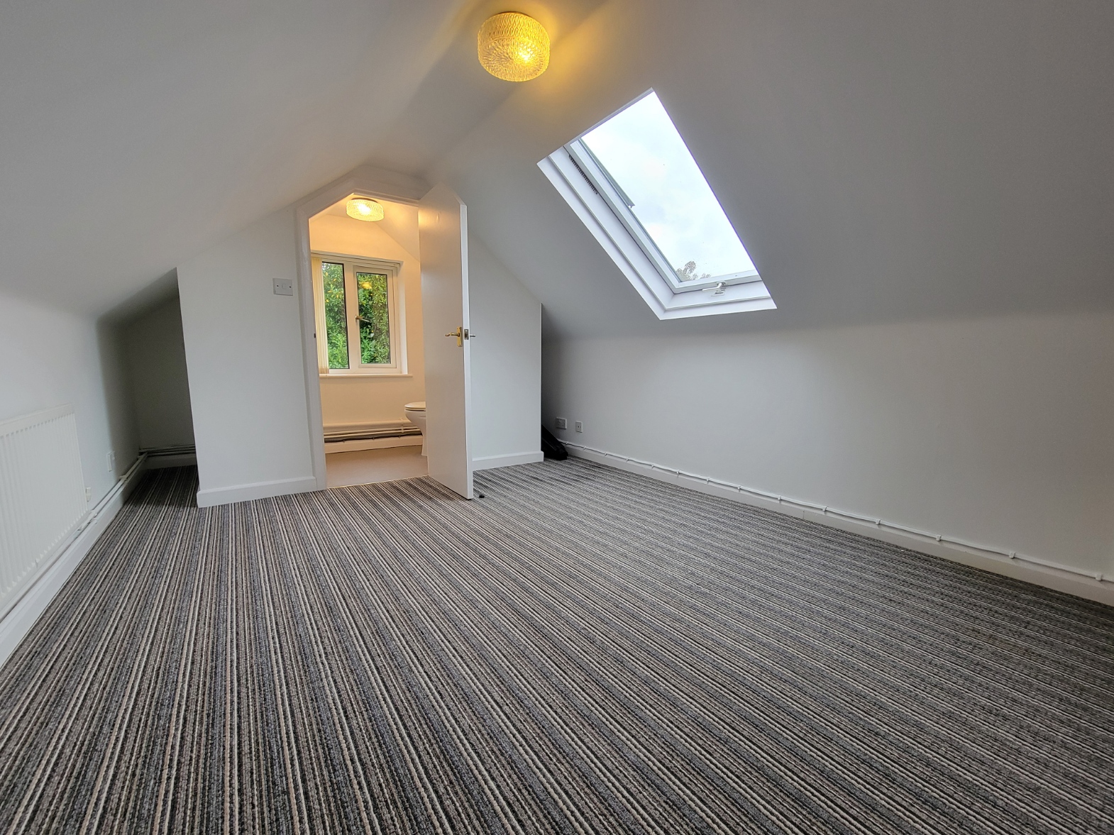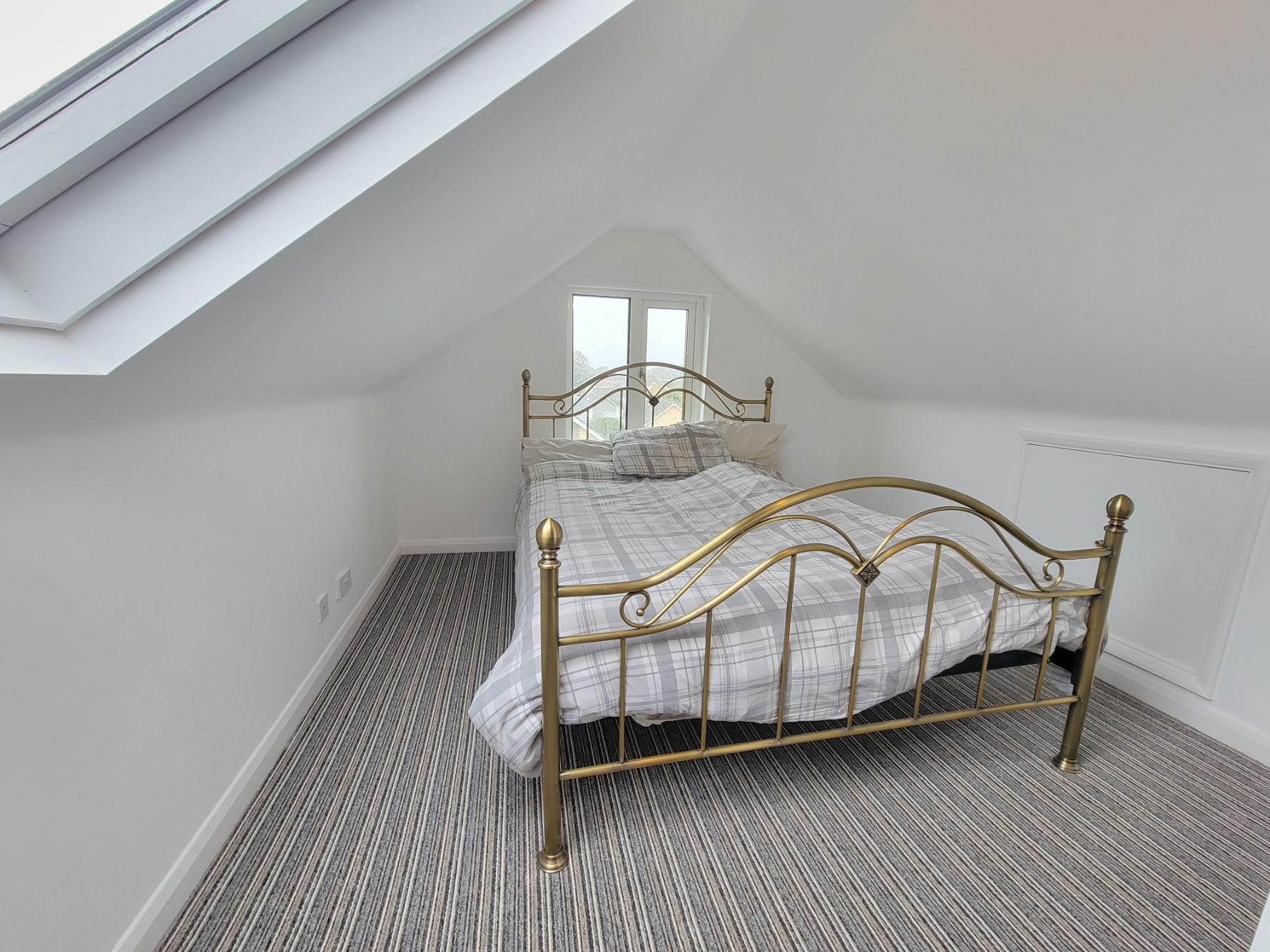First floor bedroom 1: 12' 5" x 9' 5" (3.78m x 2.87m) Radiator, Eaves storage cupboard, Velux roof window.