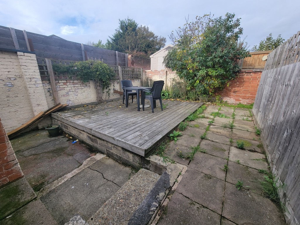 OUTSIDE: The garden comprises a good size raised deck with fenced and walled boundaries, wide wooden gate and personal door lead to the pedestrian path and offer potential for vehicular access.