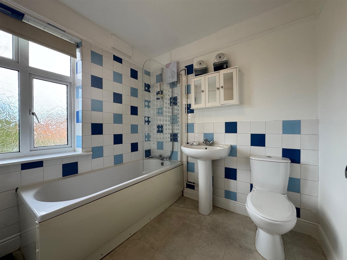 Double glazed window to rear, bath with shower over, wash basin, W.C, part tiled and a radiator.