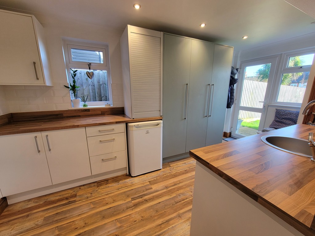 UTILITY ROOM: 14' 9" x 7' 9" (4.5m x 2.36m) Fitted with an extensive range of base and wall mounted storage units, wood effect worktops inset with circular stainless steel sink with mixer tap, space and plumbing for washing machine, space for low level freezer, inset spotlights, wood effect flooring, built-in storage cupboard housing the wall mounted gas fired boiler, window to the side aspect, glazed door and window opening directly to the garden.