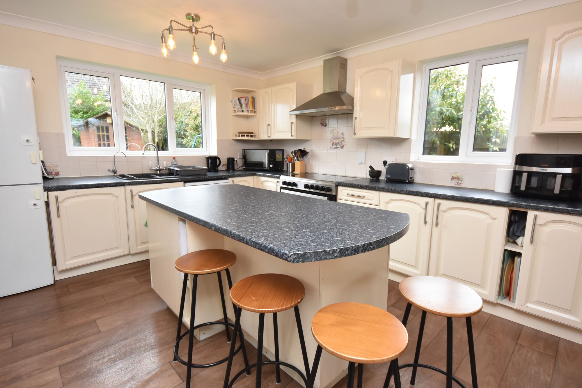 A bright and versatile addition with tiled flooring and surrounding double glazed windows, enjoying delightful views of the rear garden. Double glazed doors provide direct access outside, making this an ideal space for relaxing or entertaining throughout the year.