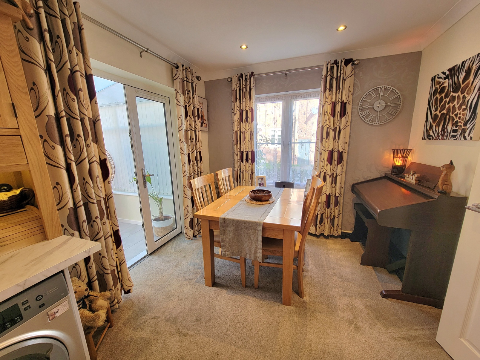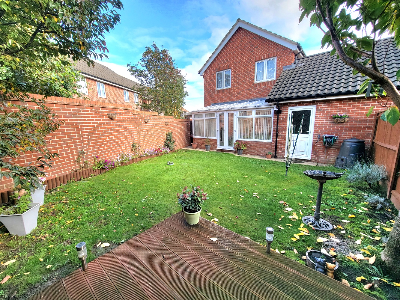 This recently built detached house occupies an appealing position, presented in superb condition throughout. Features include a spacious reception hall, ground floor cloakroom, the sitting room is located to the front with fireplace and feature bay window overlooking the green, and spacious kitchen/dining room leads to a good quality conservatory which in turn overlooks the rear garden. On the first floor a spacious landing gives access to the master bedroom with built-in wardrobes and en-suite, two further generous bedrooms and family bathroom. Internal viewing is essential.