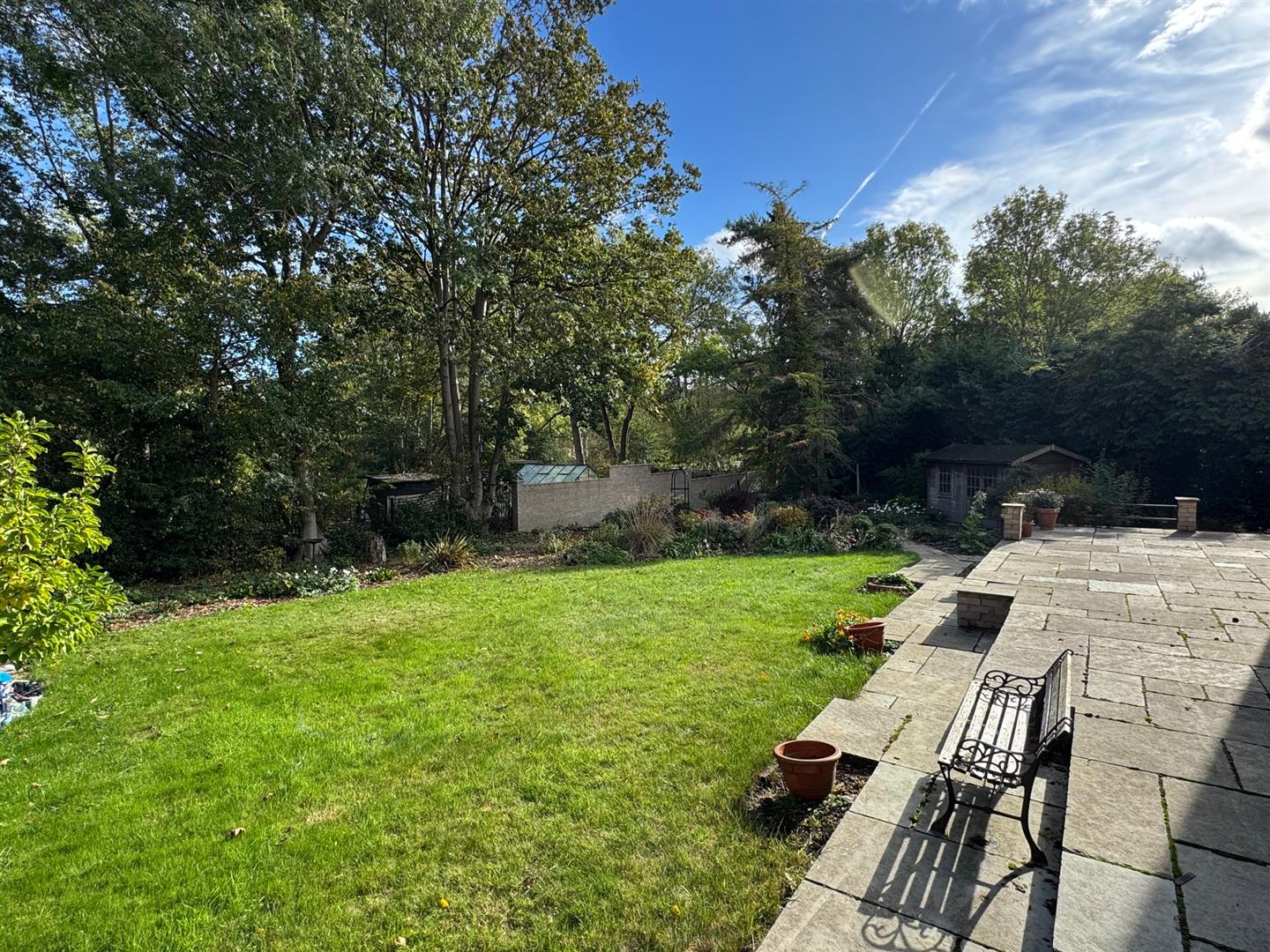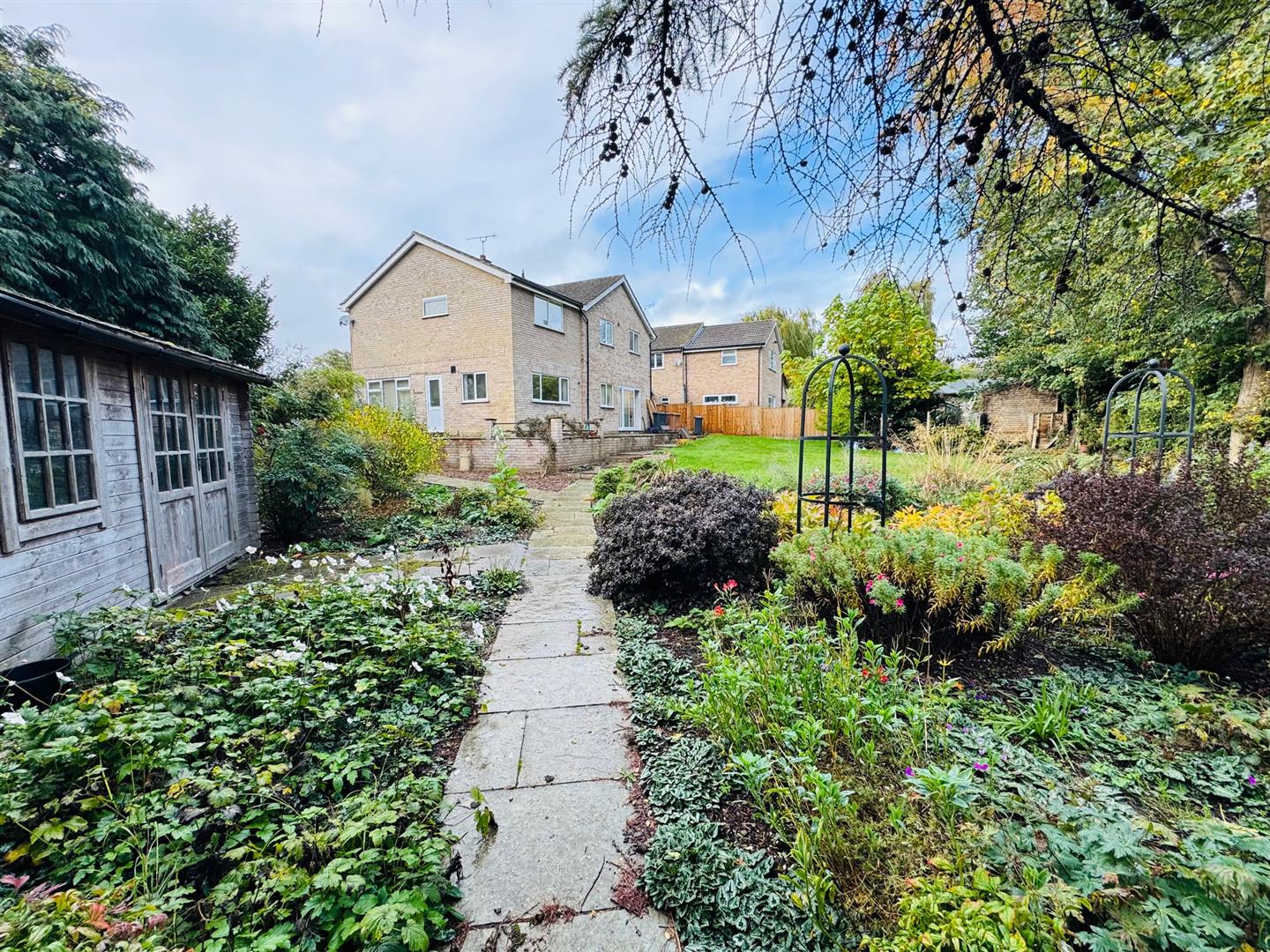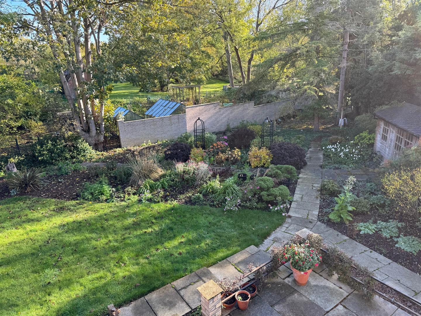 The rear garden has a raised patio area with steps down to a lawn. There is a variety of of shrubs, flower beddings, trees and a summer house. There is a further woodland garden with a variety of trees. The whole plot including the formal gardens totals around half an acre (not measured).