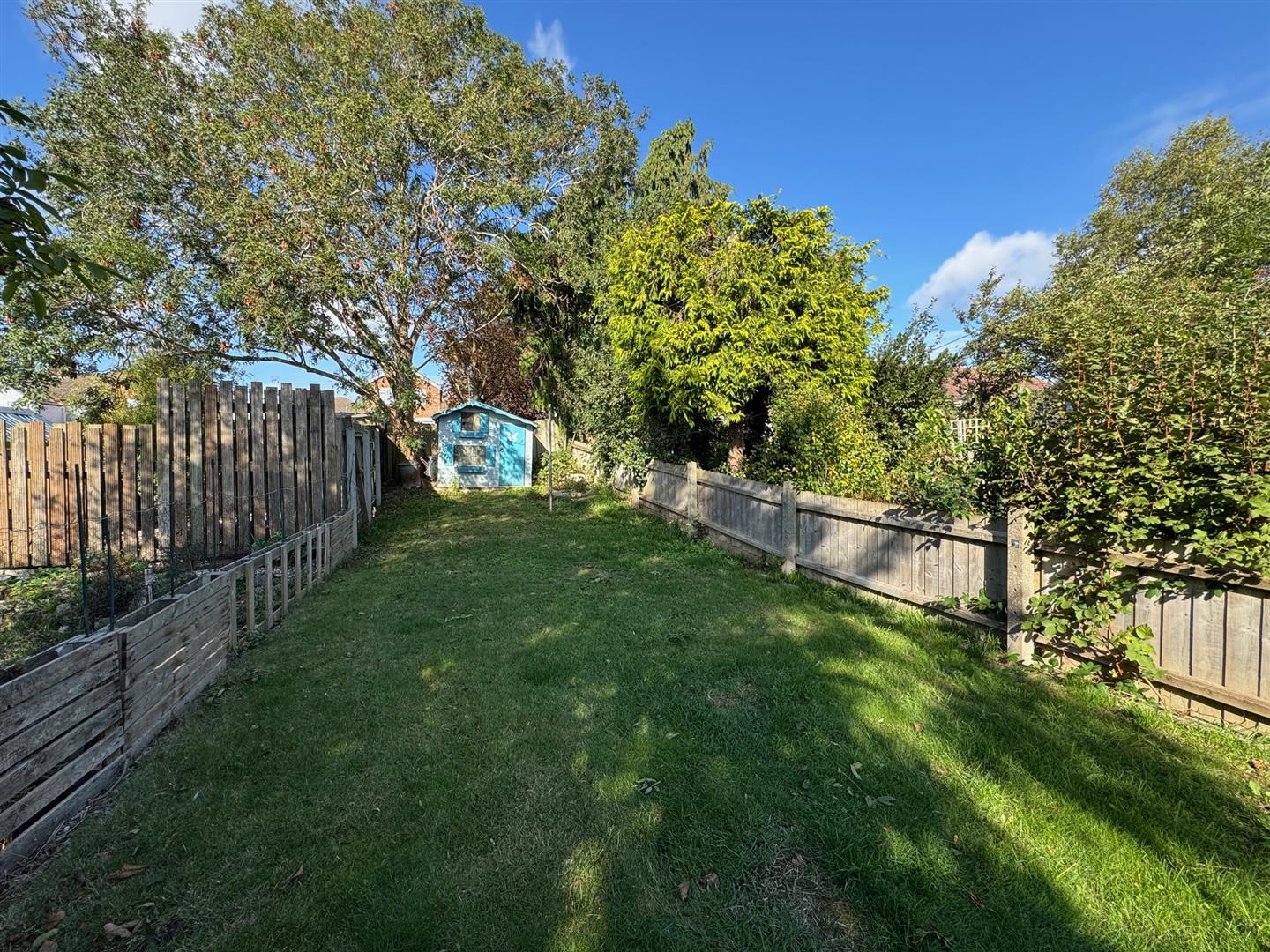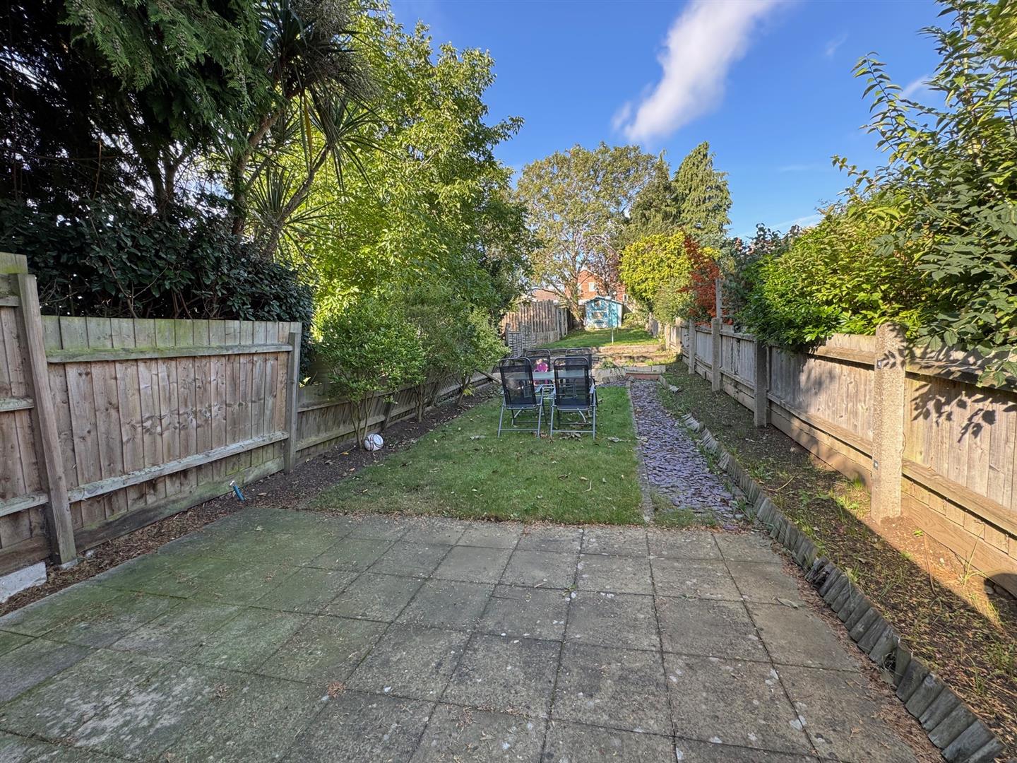 The rear garden has a path from the back door to the garden ( pedestrian access via a path for neighbouring properties ). The westerly facing garden is over 110 ft with a lawn, patio area, shrubs and shed.