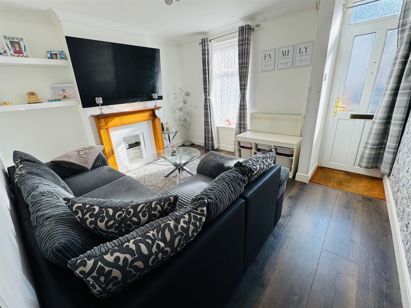 Double glazed window to front, radiator, fire surround, under stair cupboard and door to