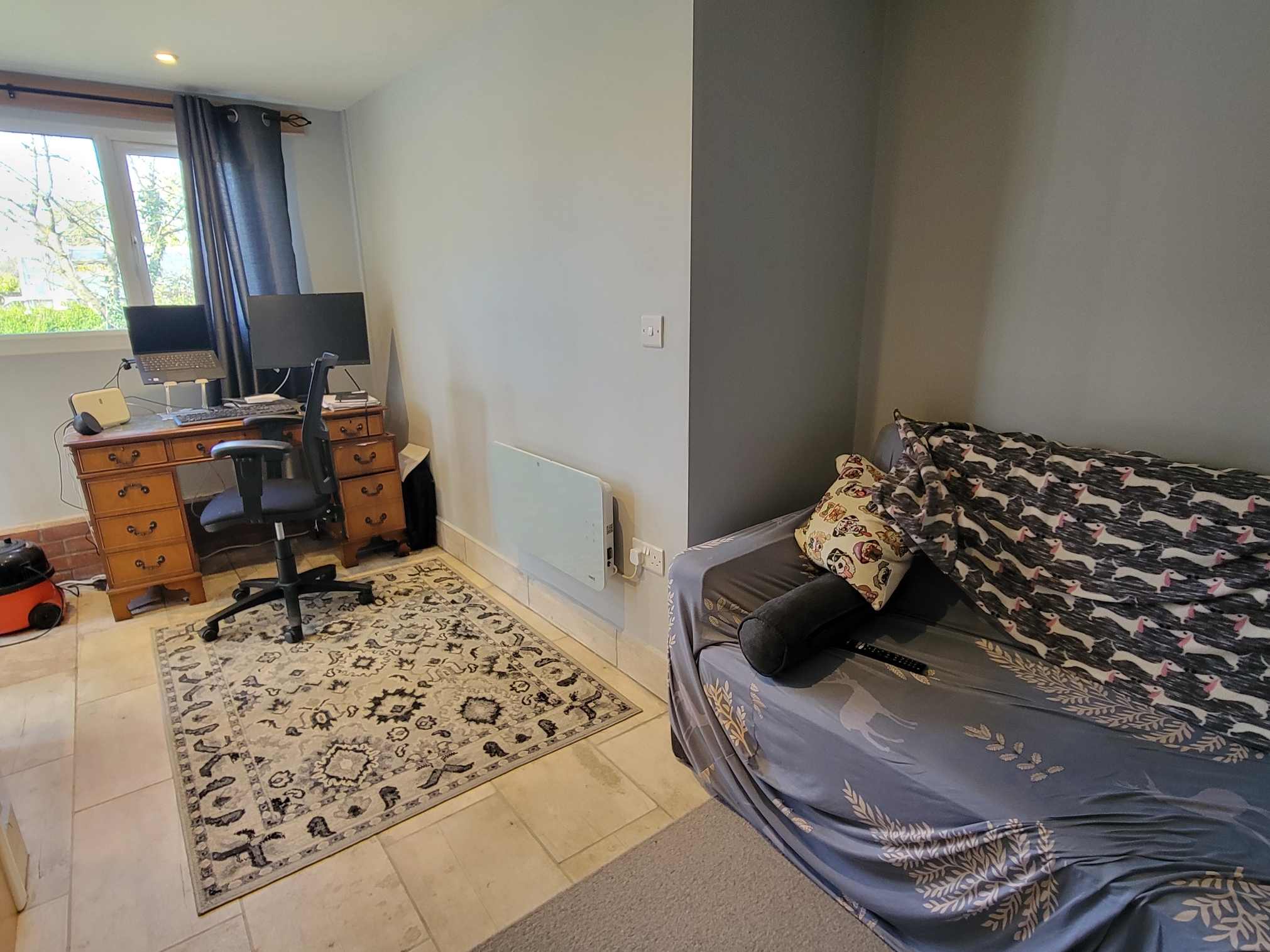 Entrance porch: Solid oak entrance door, two side windows, tiled floor.