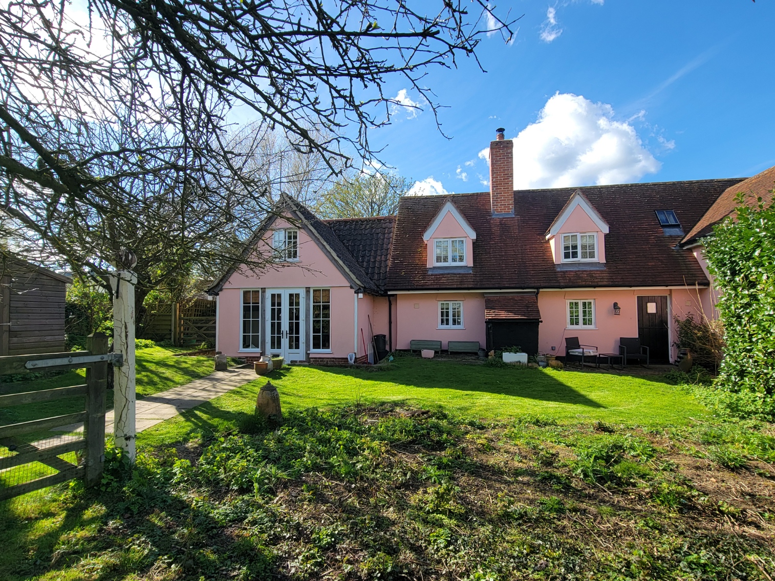 This delightful period cottage displays a wealth of period features associated with this era including exposed timbers, inglenook fireplace with wood burning stove and oak ledge and brace doors. Having recently been the subject of a meticulous and renovation and extension program, presented in superb condition throughout. Features include an atmospheric sitting room with inglenook and wood burning stove, the master bedroom has a vaulted ceiling with extensive exposed timbers and generous en-suite bathroom with freestanding bath. A particular feature is the superb and spacious farmhouse kitchen, handmade oak cabinetry, granite worktops and aga style range, French doors open directly to the garden. The gardens and grounds are a particular feature, established with mature established fruit trees, specimen walnut tree, towards the end of the garden there is a good quality detached timber building with stable door leading to studio/annex with kitchenette and independent shower room and wc. Internal viewing is essential to appreciate the period style and extent of the gardens and grounds.
