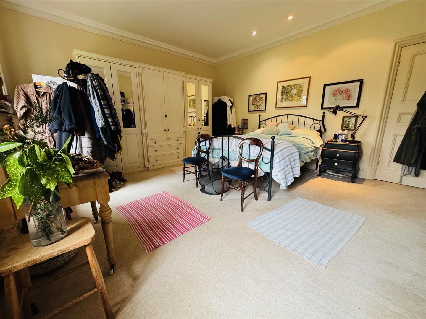 2 sash windows to rear with beautiful views of the gardens, radiator, wardrobes, cornice to ceiling and spotlights.