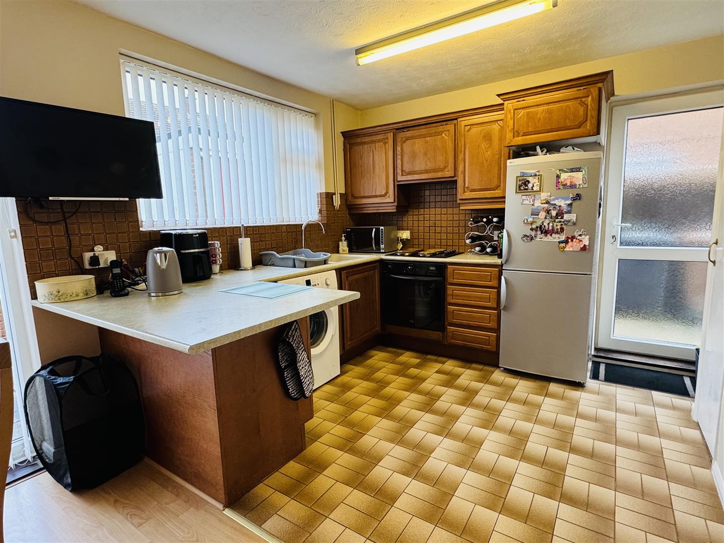 Double glazed window to rear, range of wall and base units, work tops, sink and drainer, tiled splash backs, space for appliances, built in cupboard, double glazed doors to side Opens to dining space with a double glazed door and windows to rear.