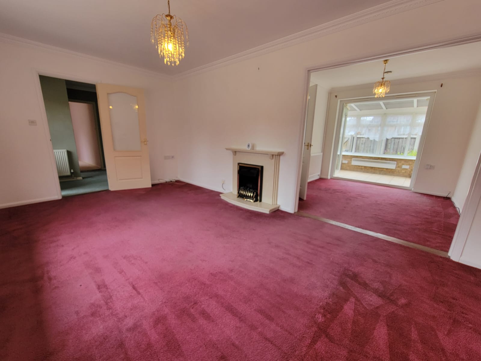10' 8" x 9' 2" (3.25m x 2.79m) Radiator, half glazed door to the kitchen, PVC double glazed French doors opening to the conservatory.