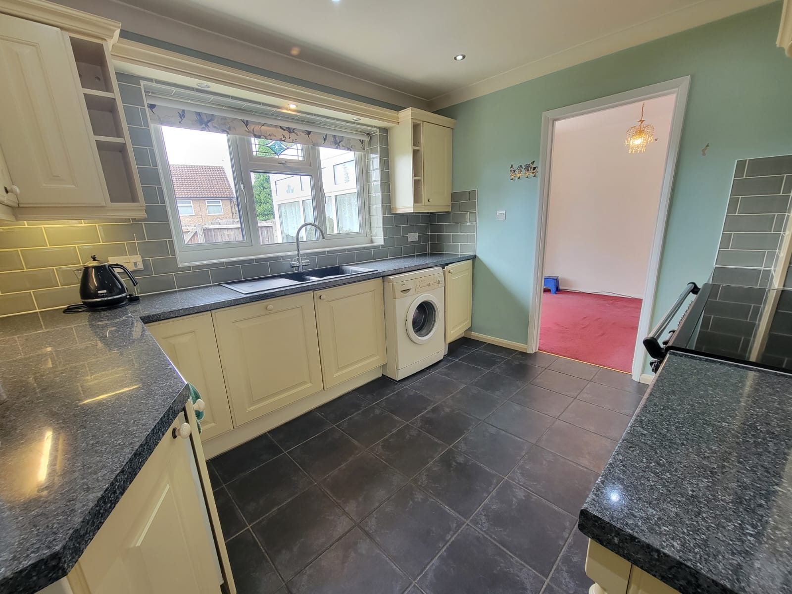 10' 9" x 8' 2" (3.28m x 2.49m) Fitted with a good range of base and wall mounted units having panelled shaker style doors and drawer fronts, fitted worktops inset with one and half bowl sink unit, feature chimney breast inset with freestanding range cooker, integrated low level fridge, low level freezer and dishwasher, plumbing for washing machine, tiled floor, inset spotlights, pelmet lighting, generous PVC double glazed window overlooking the rear garden.