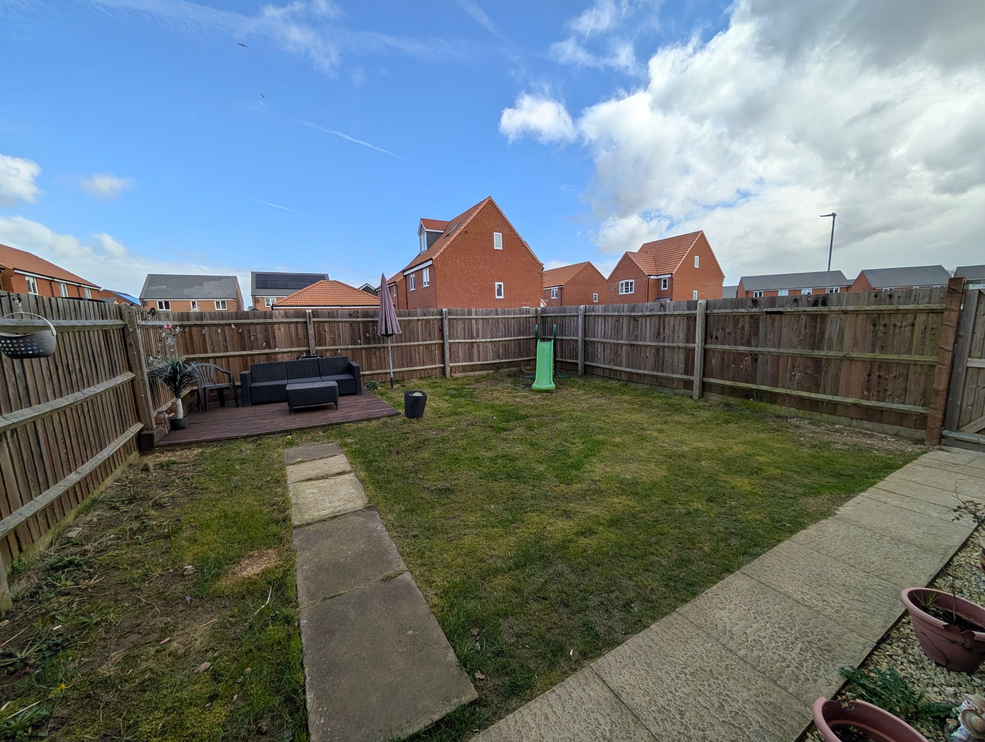 Outside, the property benefits from a fully enclosed rear garden, mainly laid to lawn with a small raised decking area, ideal for outdoor seating. There is a long single garage, off-road parking for two vehicles, and external power points.