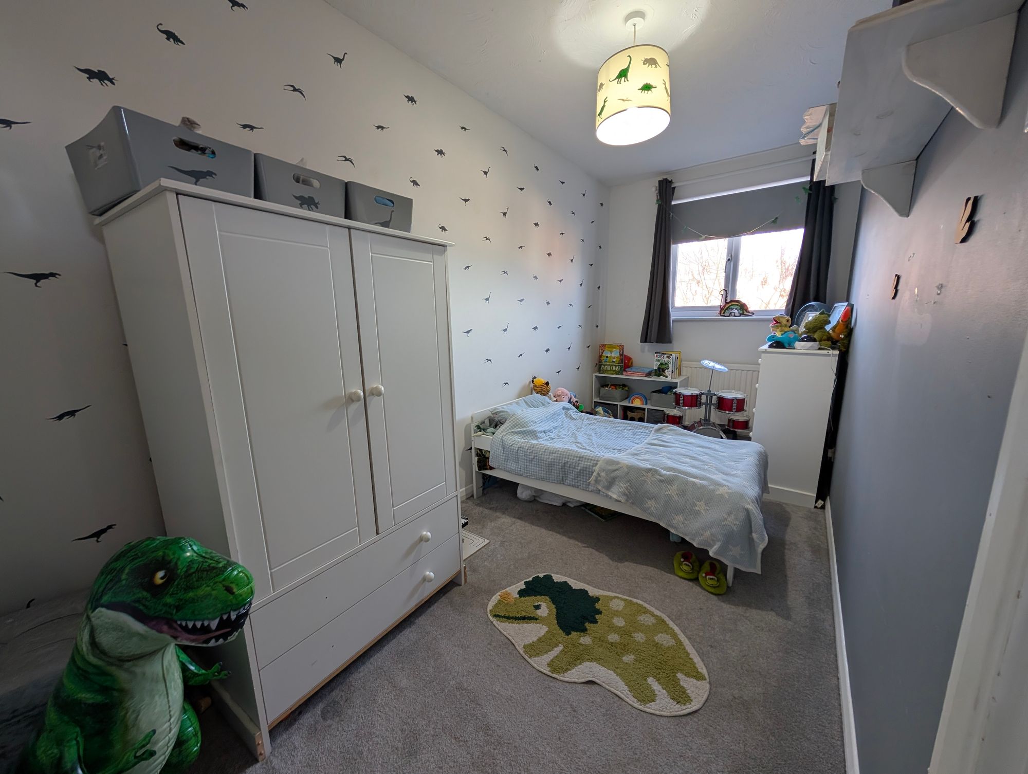 A further well-proportioned bedroom with window to the front aspect, radiator, and built-in storage cupboard.
