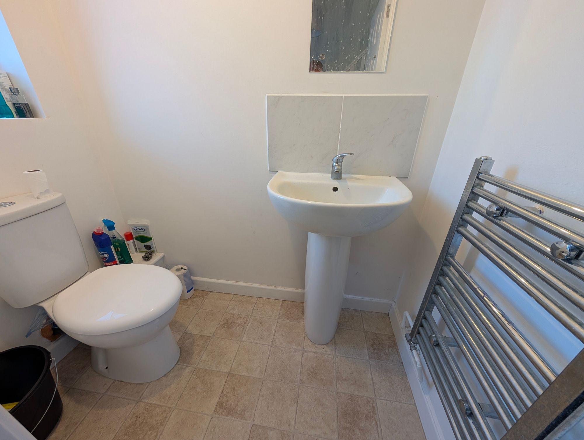 Conveniently located on the ground floor and fitted with a WC, wash hand basin, heated towel rail, and front-facing window.
