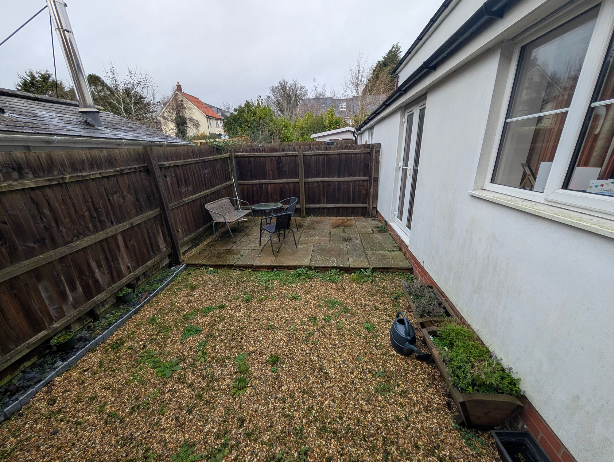 The rear garden is fully enclosed and designed for ease of maintenance, featuring a paved seating area ideal for outdoor relaxation.