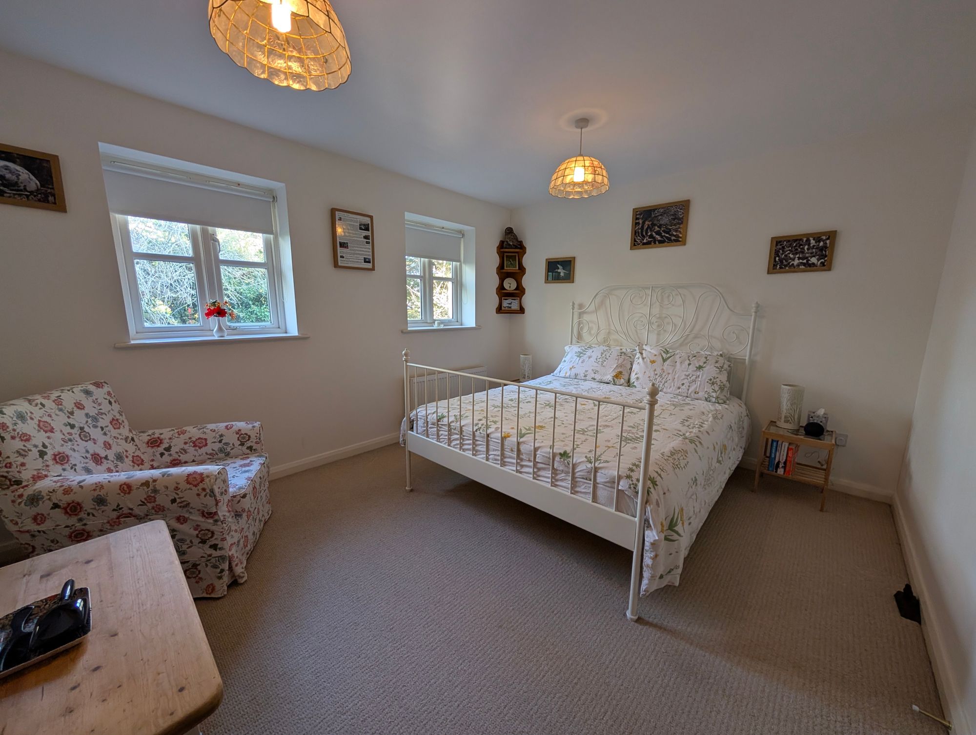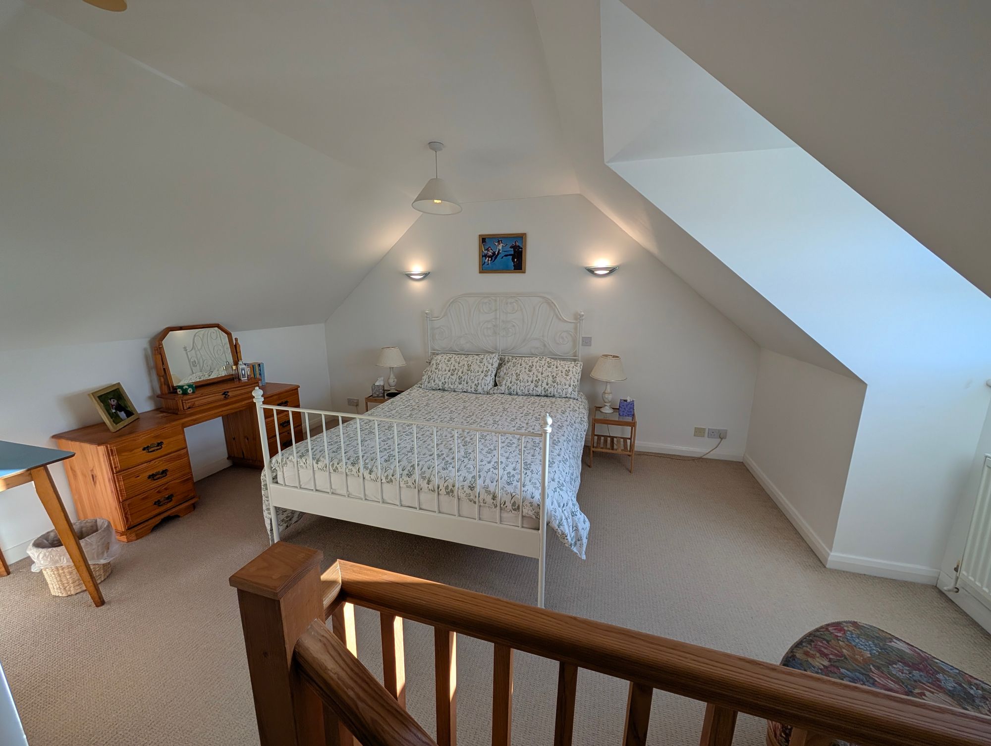Generous double bedroom with dormer window to the front, radiator, and ample space for wardrobes and furniture.
