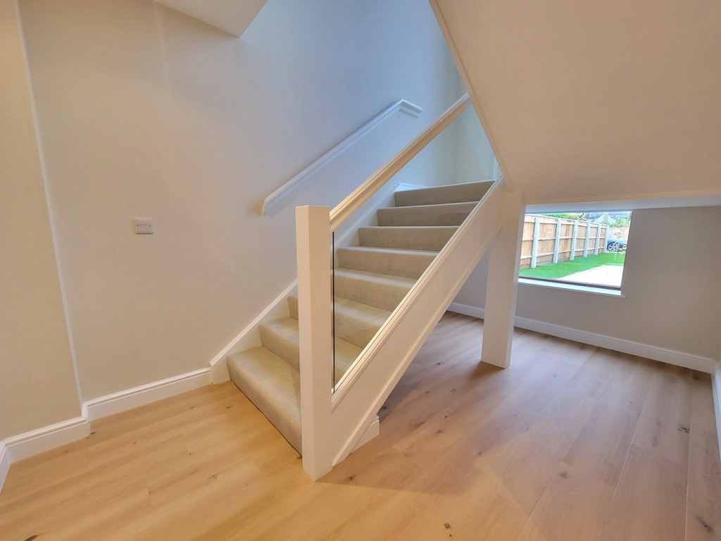 WIDE STAIRCASE with half landing and feature glazed gable picture window to the front aspect.