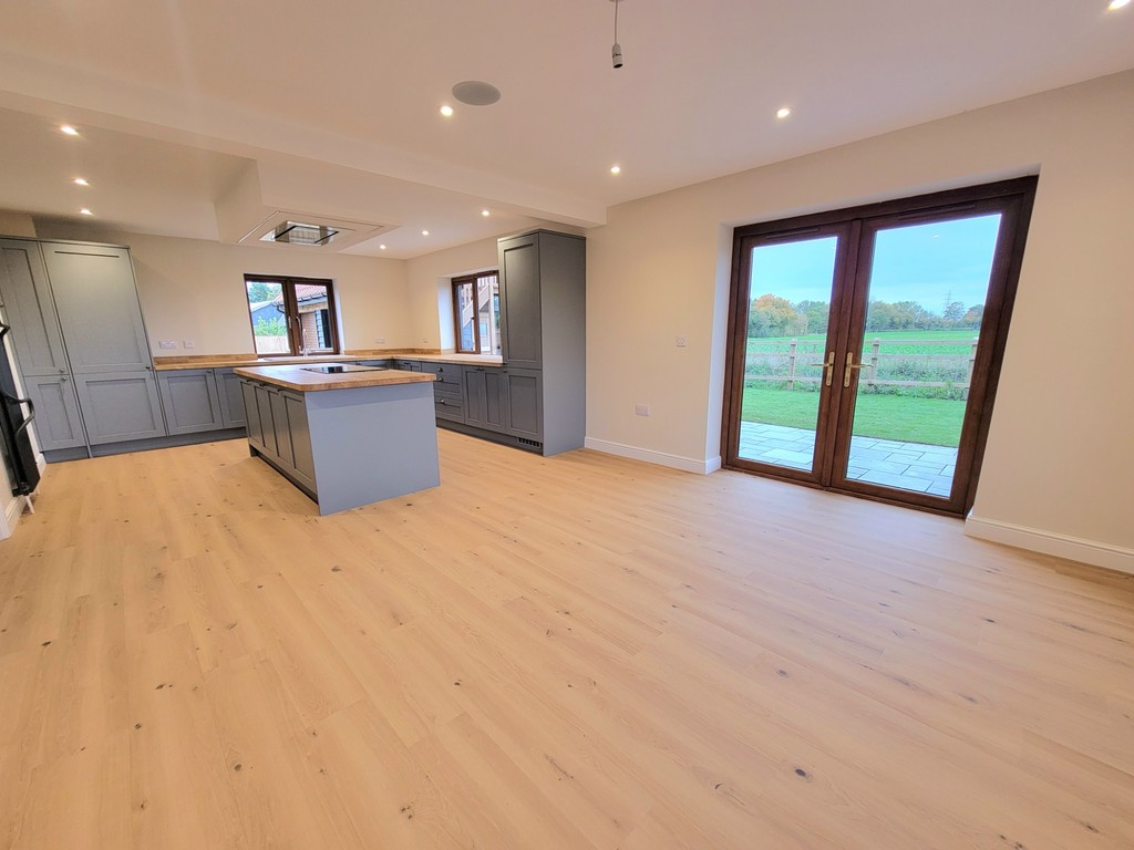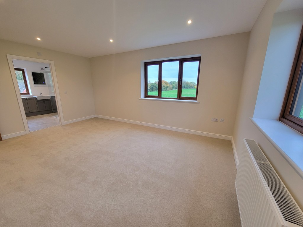 This superb newly finished, bespoke, detached property is finished to the highest standards throughout and thoughtfully designed with flexible family accommodation. Spacious reception hall gives access to the sitting room with two windows overlooking farmland and double doors opening to the superb well appointed live-in kitchen/dining/family room with French doors opening to the garden, the kitchen has been fitted with a good range of built-in appliances and an attractive central island. The ground floor is complimented by a spacious walk-in shower/wetroom. On the first floor the master bedroom, again double aspect with far reaching views and a generous en-suite shower room, there are three further double bedrooms and family bathroom with separate shower. Out side the property offers a good degree of seclusion, large sweeping gravel drive leads to a detached double garage with external staircase leading to a room above, suitable for a multitude of uses.