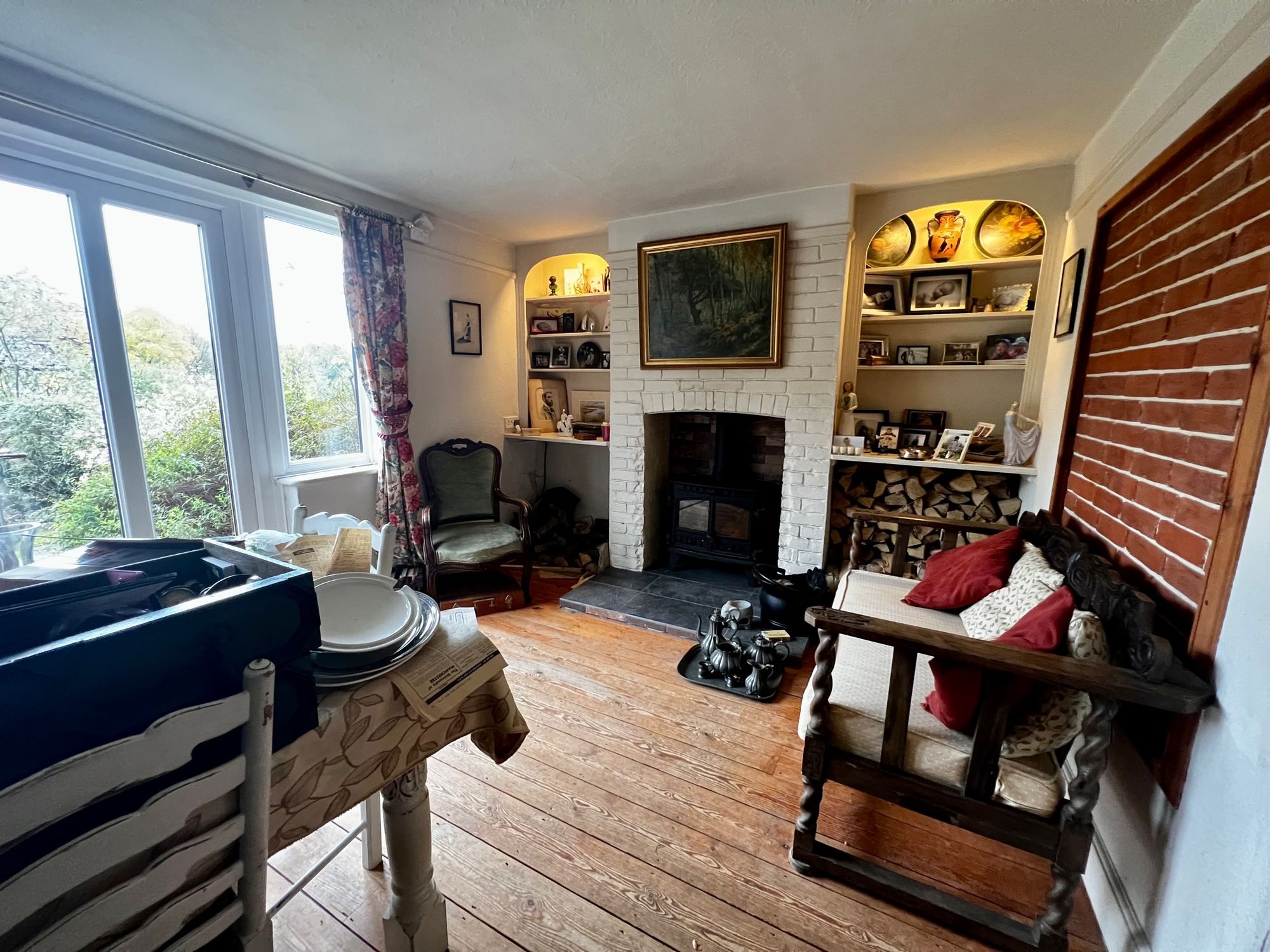 Lounge/Diner - wooden flooring, two wall radiators, working wood burner, window to side aspect