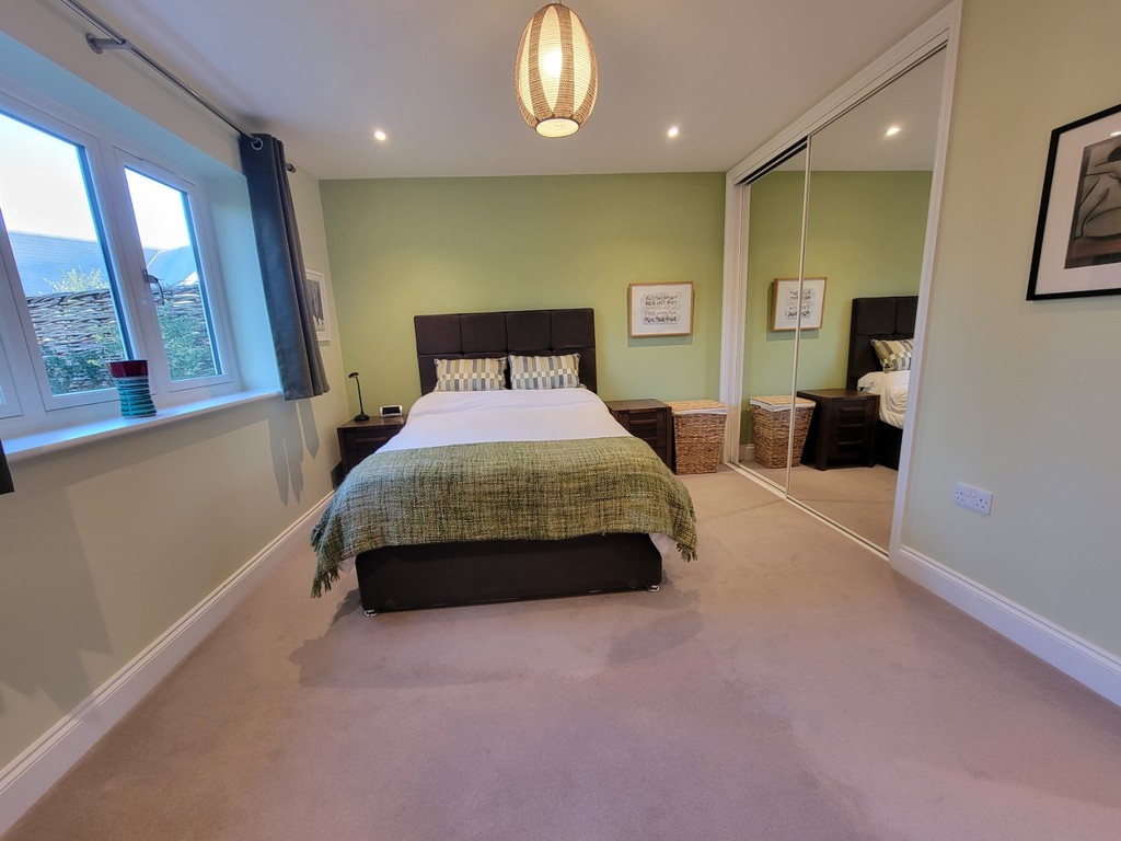 MASTER BEDROOM: 13' 9" x 10' 4 " (4.19m x 3.15m) Good size built-in double wardrobe with sliding mirrored doors inset with fitted shelves and hanging rails, inset spotlights, generous PVC double glazed window overlooking the rear garden.