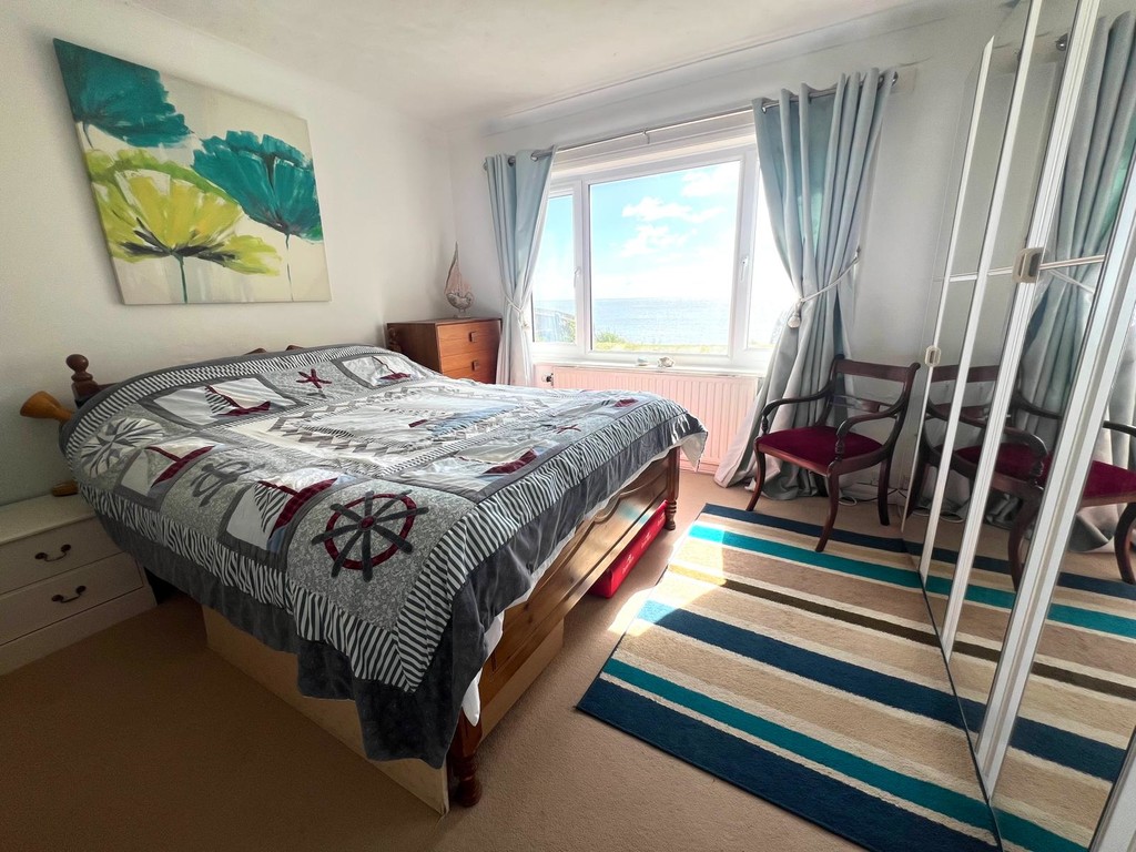 MASTER BEDROOM: UPVC window to rear aspect with superb sea views. Radiator. Textured and coved, fitted carpet.