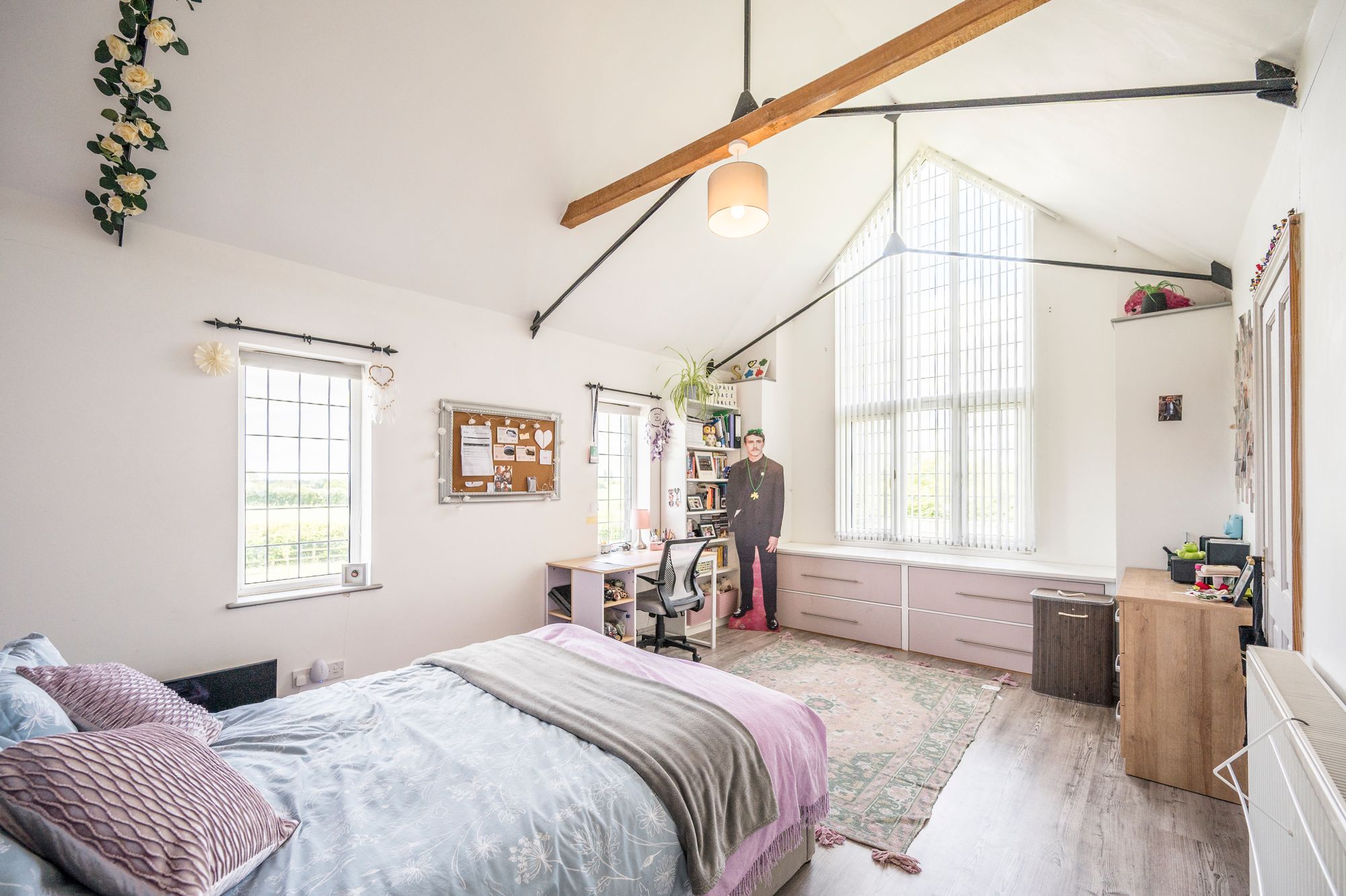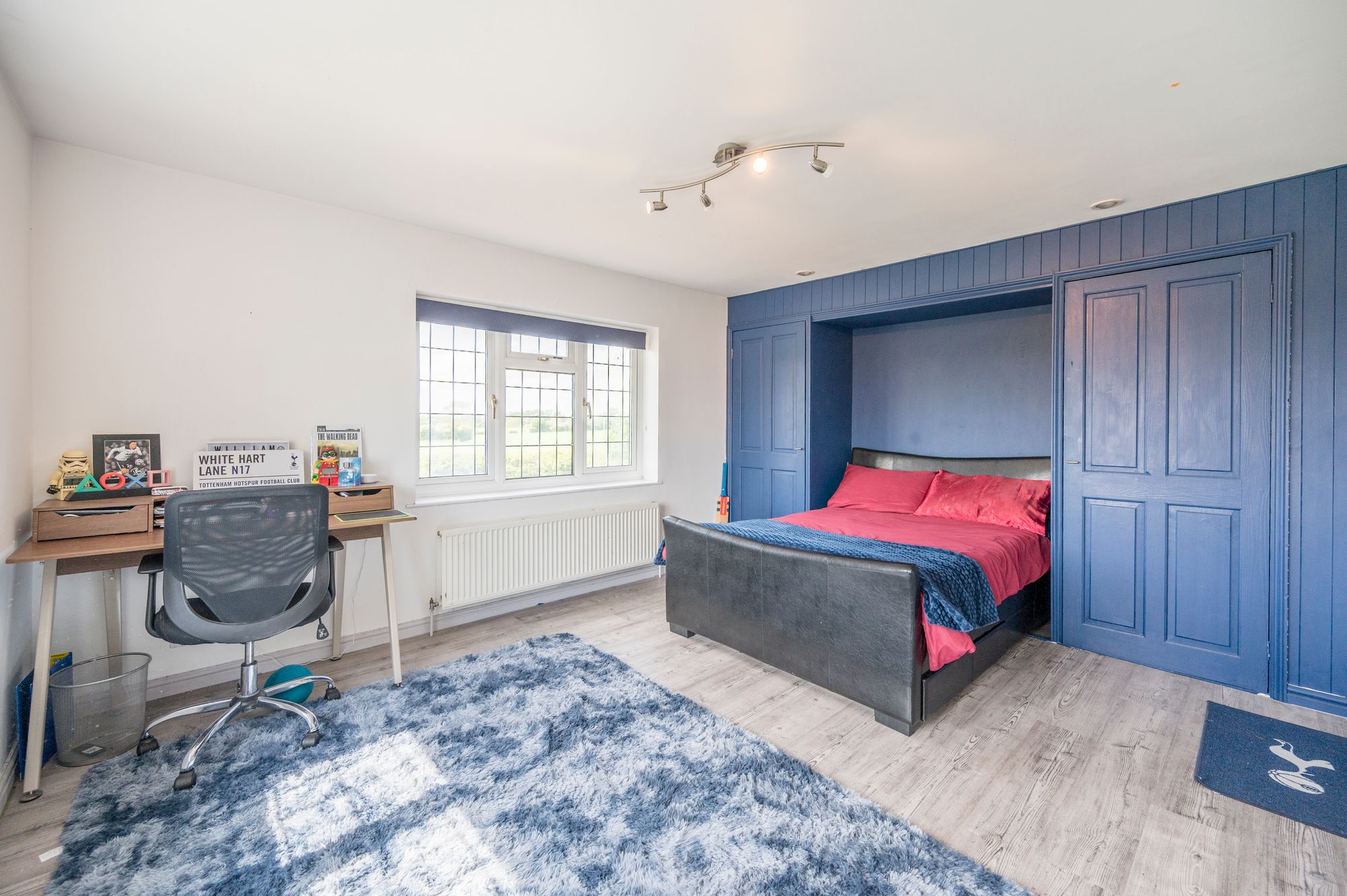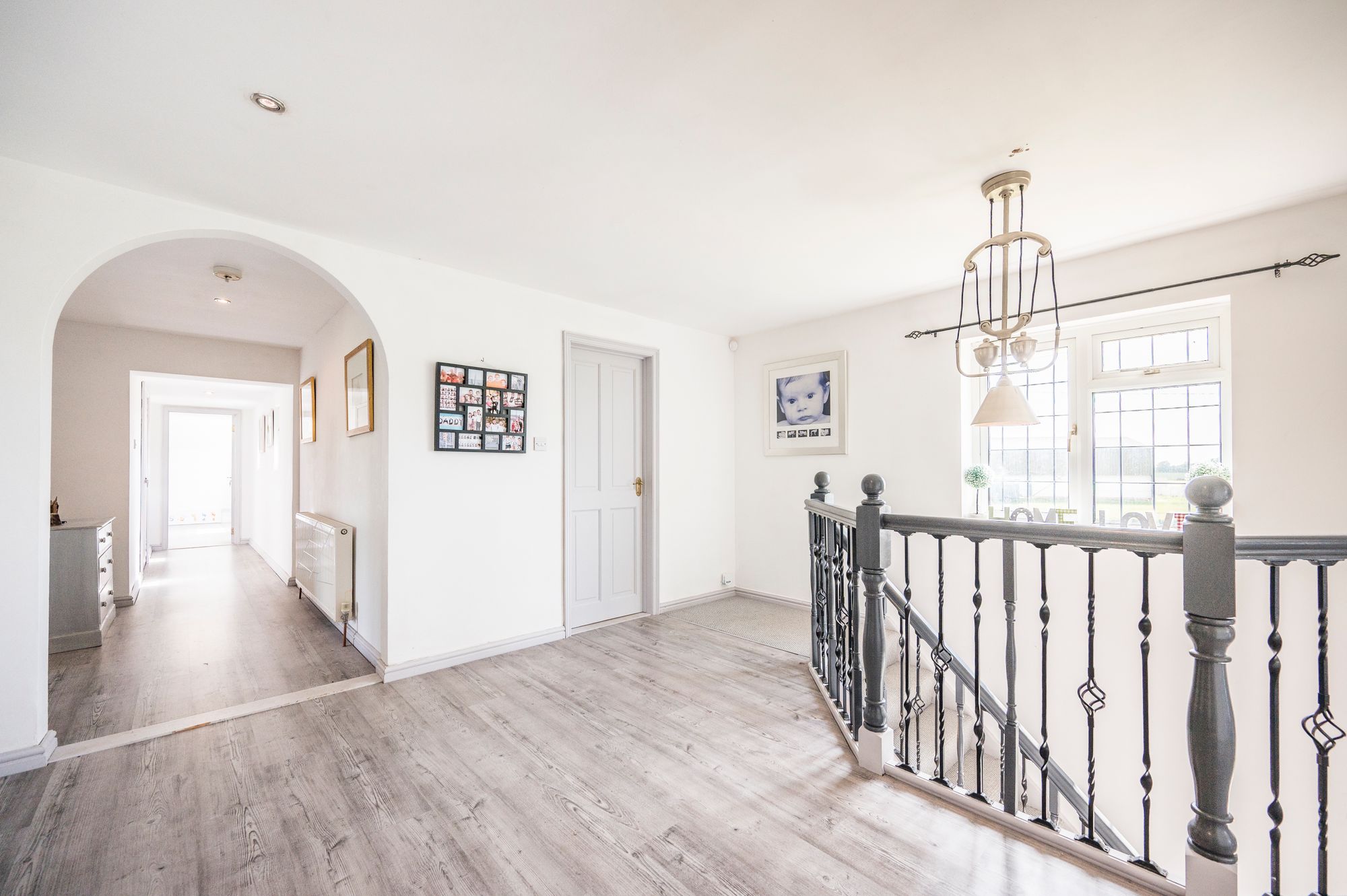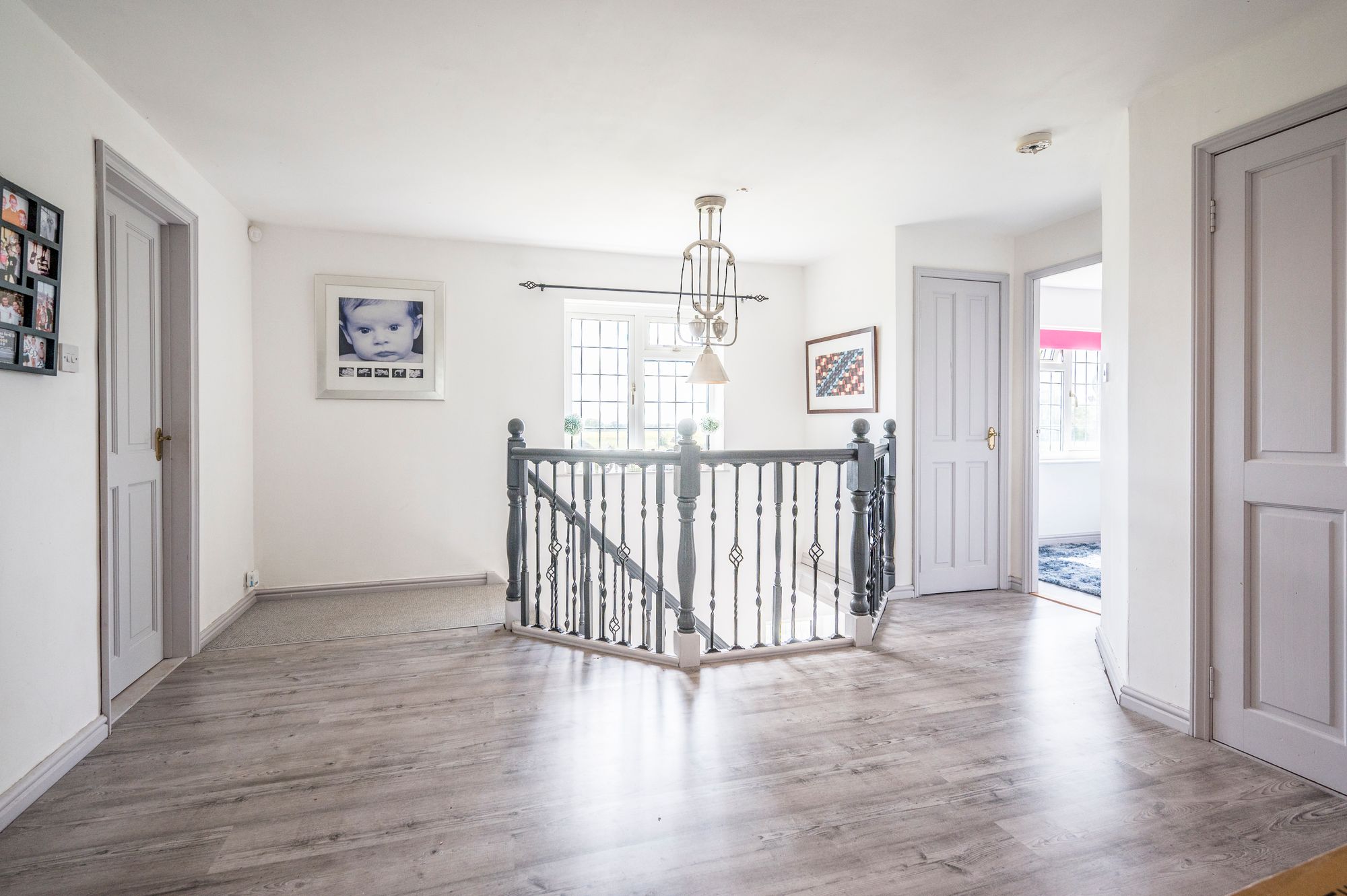 There is a large first floor landing with airing cupboards and storage cupboards. Off the landing are the five first floor bedrooms and a family bathroom. The principal bedroom is dual aspect with windows to the front and rear. There are fitted wardrobes and drawers as well as eaves storage cupboards. It has an en-suite shower room which is tiled and comprises a walk-in shower, WC and hand wash basin. Bedroom two is a further impressive room with vaulted ceiling and window that rises into the apex which enjoys fine views over the rear garden and adjacent farmland. This also has an en-suite shower room. The three further first floor bedrooms are all doubles and have fitted/built-in wardrobes. In addition is a family bathroom.